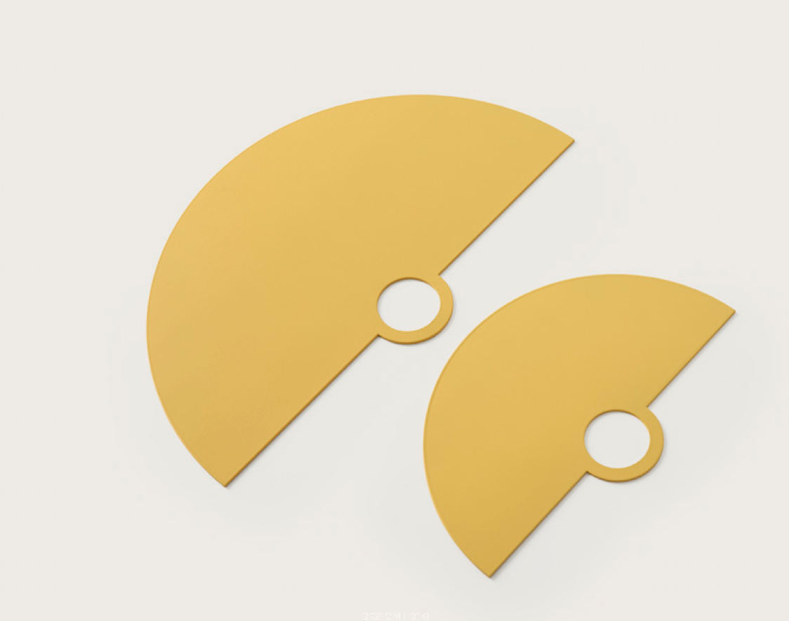 Klosz w kształcie wachlarza / przepołowionego dysku do lamp ściennych, wiszących, stołowych oraz podłogowych, wykonany w całości z metalu. Dostępny w kolorach białym, czarnym oraz w kolorach z palety. Istnieje możliwość zamówienia koloru spoza palety za dodatkową opłatą.