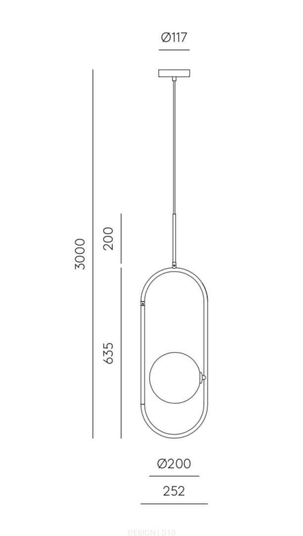 Metalowa lampa wisząca wykończona w dwóch wariantach kolorystycznych: czarny mat i matowy mosiądz. Lampa składa się z metalowej ramy w której dolnej części umieszczony został kulisty szklany klosz, dostępny w wersji przejrzystej lub opalowego szkła. Oryginalna i jednocześnie prosta forma lampy sprawia, że będzie ona ciekawym akcentem w stylu retro.