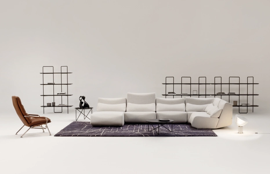 Absent to jeden z najnowszych i najodważniejszych projektów Prostorii. Cała sofa posiada niezwykle lekki i płynny kształt oraz wygląd jak ze statku kosmicznego. Swój awangardowy wygląd zawdzięcza kilku różnym siedziskom - każde z nich posiada inną wysokość oraz długość. Podstawy można dowolnie łączyć, tworząc jednocześnie niezapomniane kompozycje.
