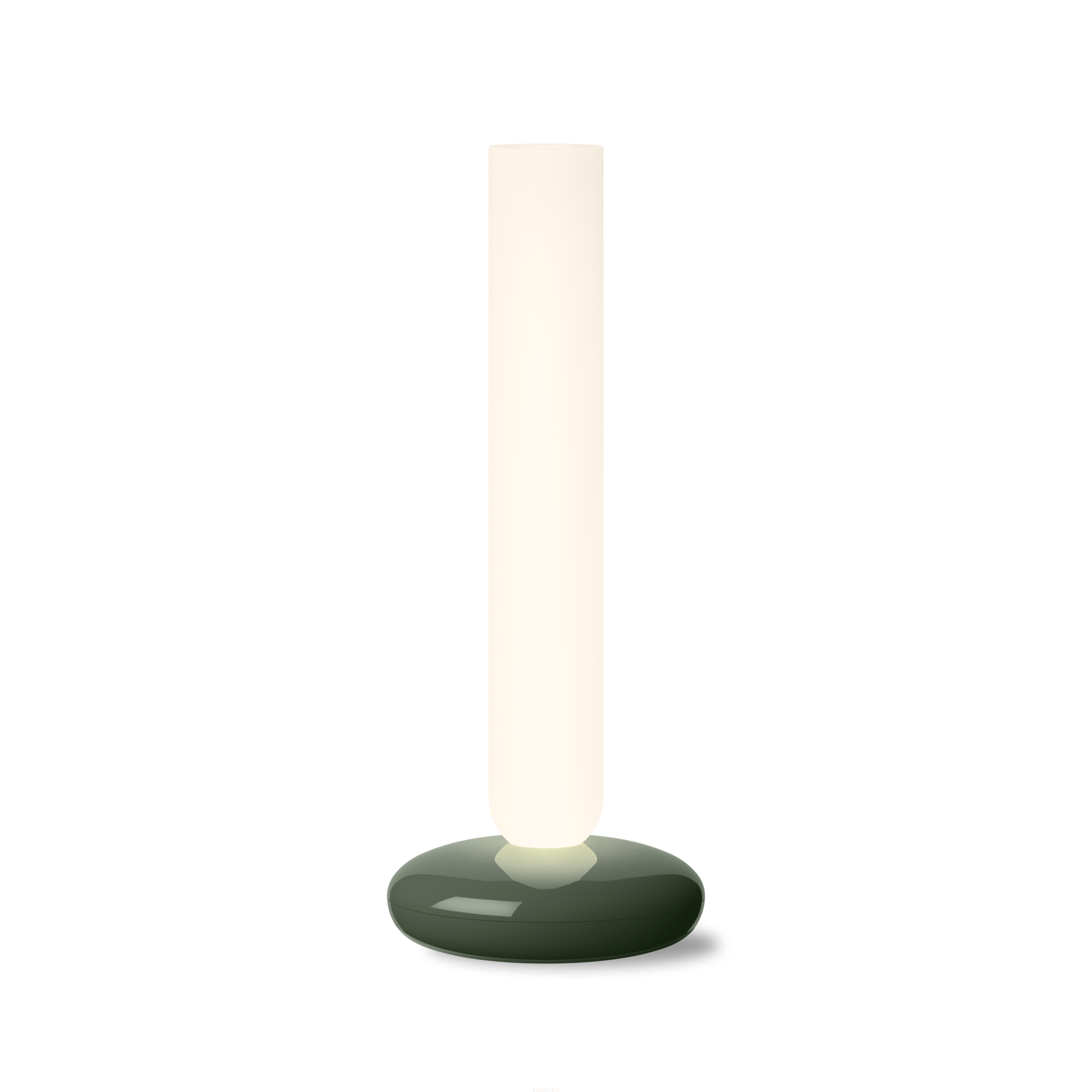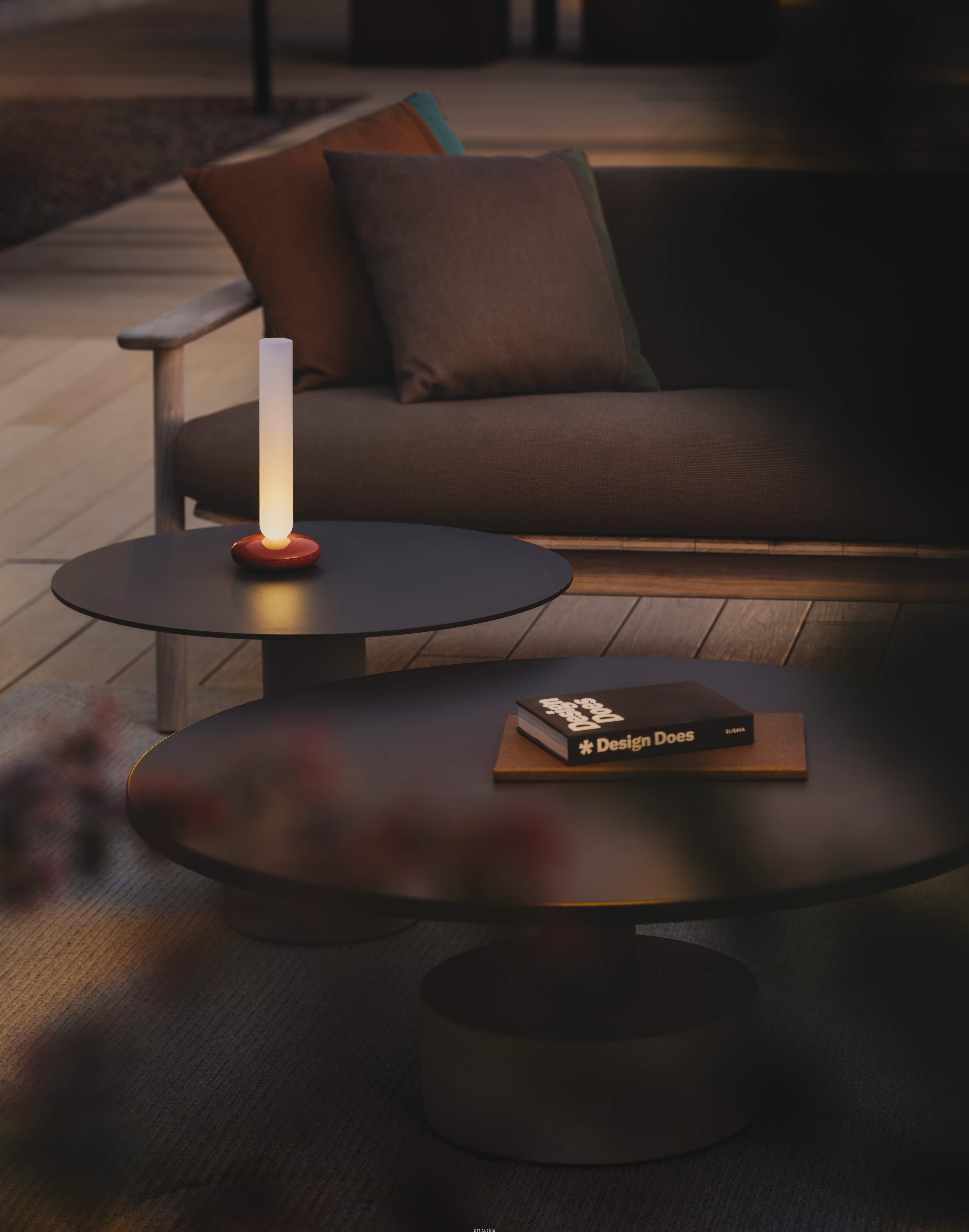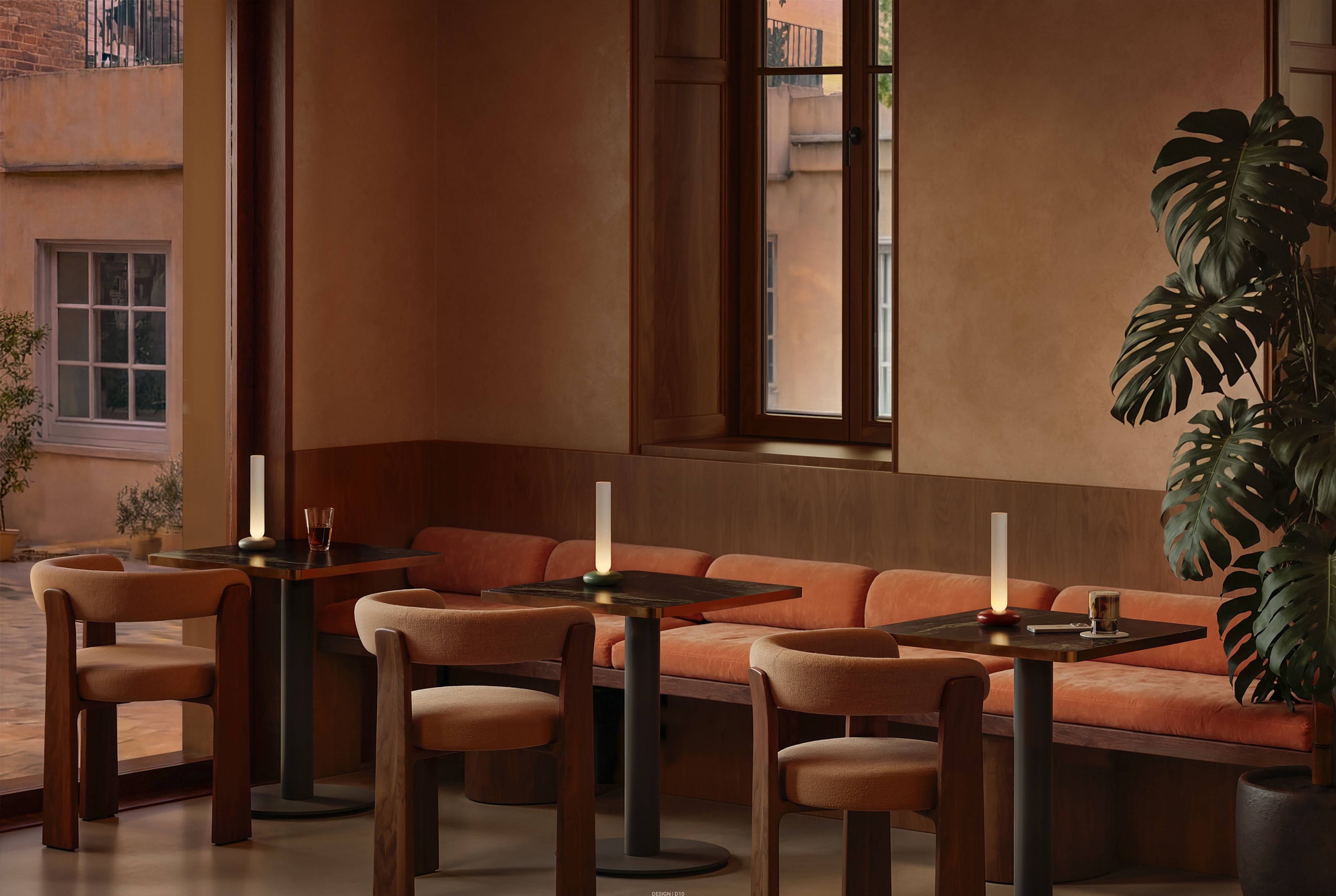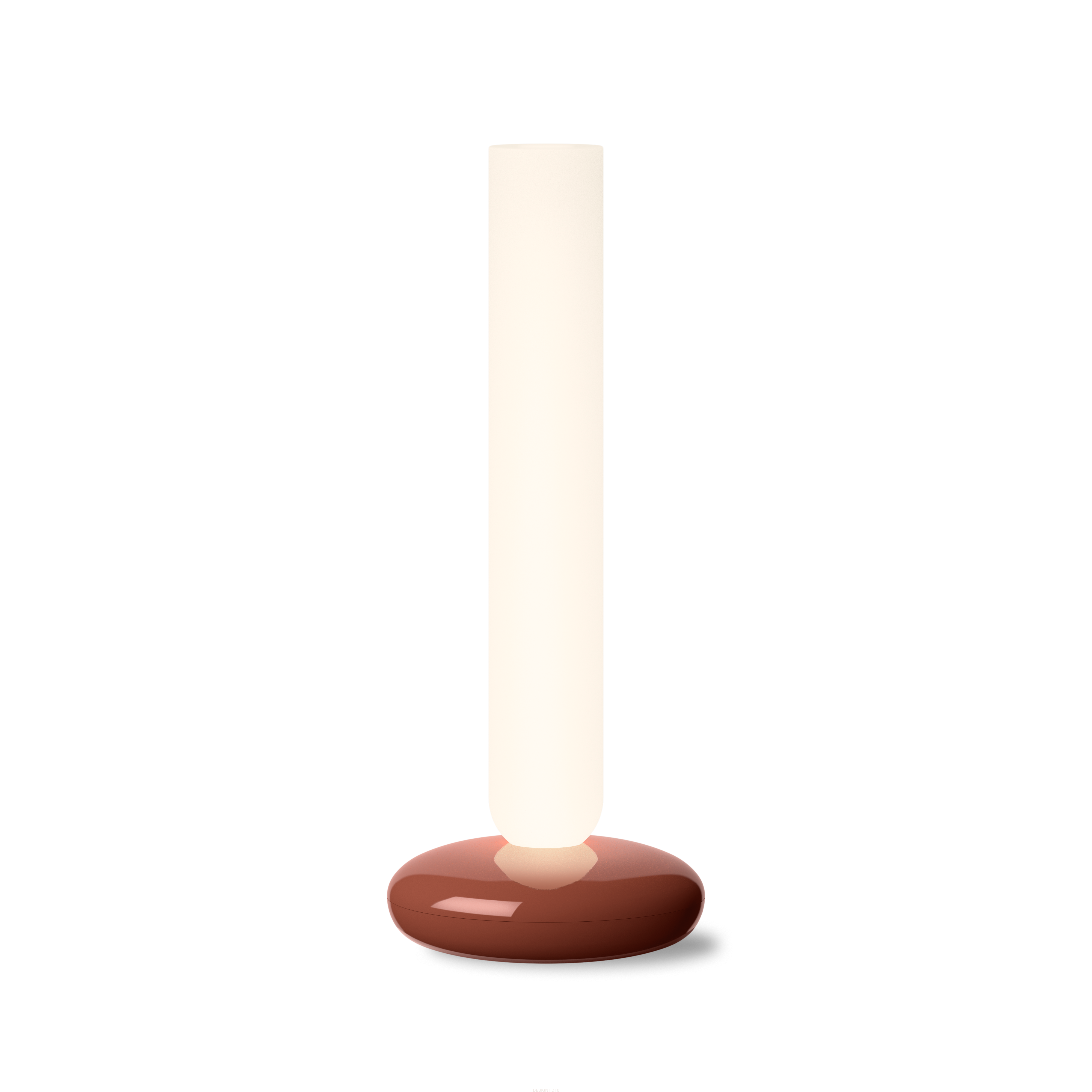 Alba przywołuje pierwsze światło świtu dzięki dwóm harmonijnie połączonym elementom: świecącemu cylindrycznemu kloszowi i odbijającej światło okrągłej podstawie, które stykają się w subtelnym punkcie styku. Uchwyca ona moment, w którym słońce wydaje się dotykać horyzontu tuż przed wschodem, łącząc formę i światło w płynnym, precyzyjnym geście.
