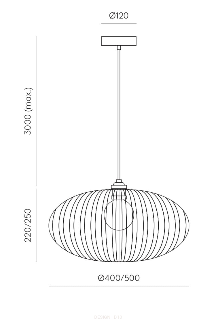 Wymiary: wysokość i średnica klosza 22/40 lub 25/50 cm, całkowita długość kabla max. 300 cm.
