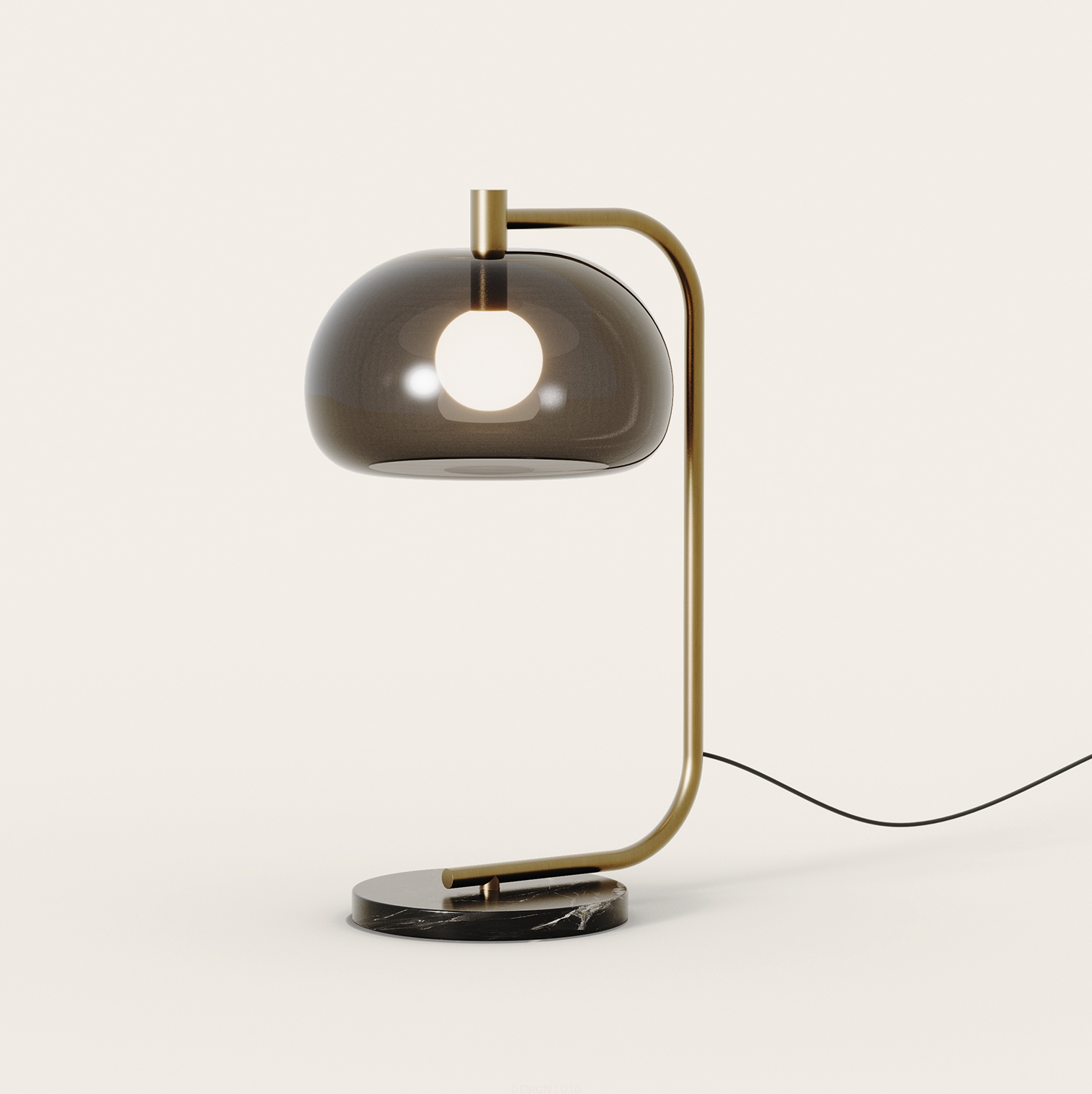 Wykonanie: podstawa z czarnego marmuru, drążek z metalu o kolorze postarzane złoto / matowy czarny, klosz ze szkła o kolorze bursztynowym / zielonkawy brąz / szary lub z czystego szkła