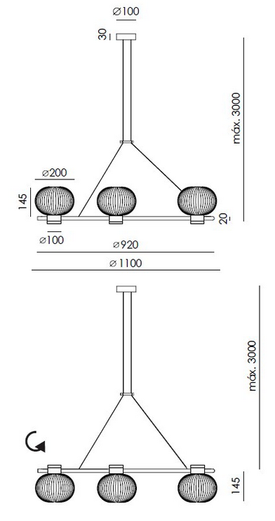 Wykonanie: szkielet lampy z metalu o kolorze czarny matowy / postarzane złoto, klosze szklane, opcjonalnie ozdobne elementy ze skóry o kolorze pomarańczowym / czarnym / brązowym