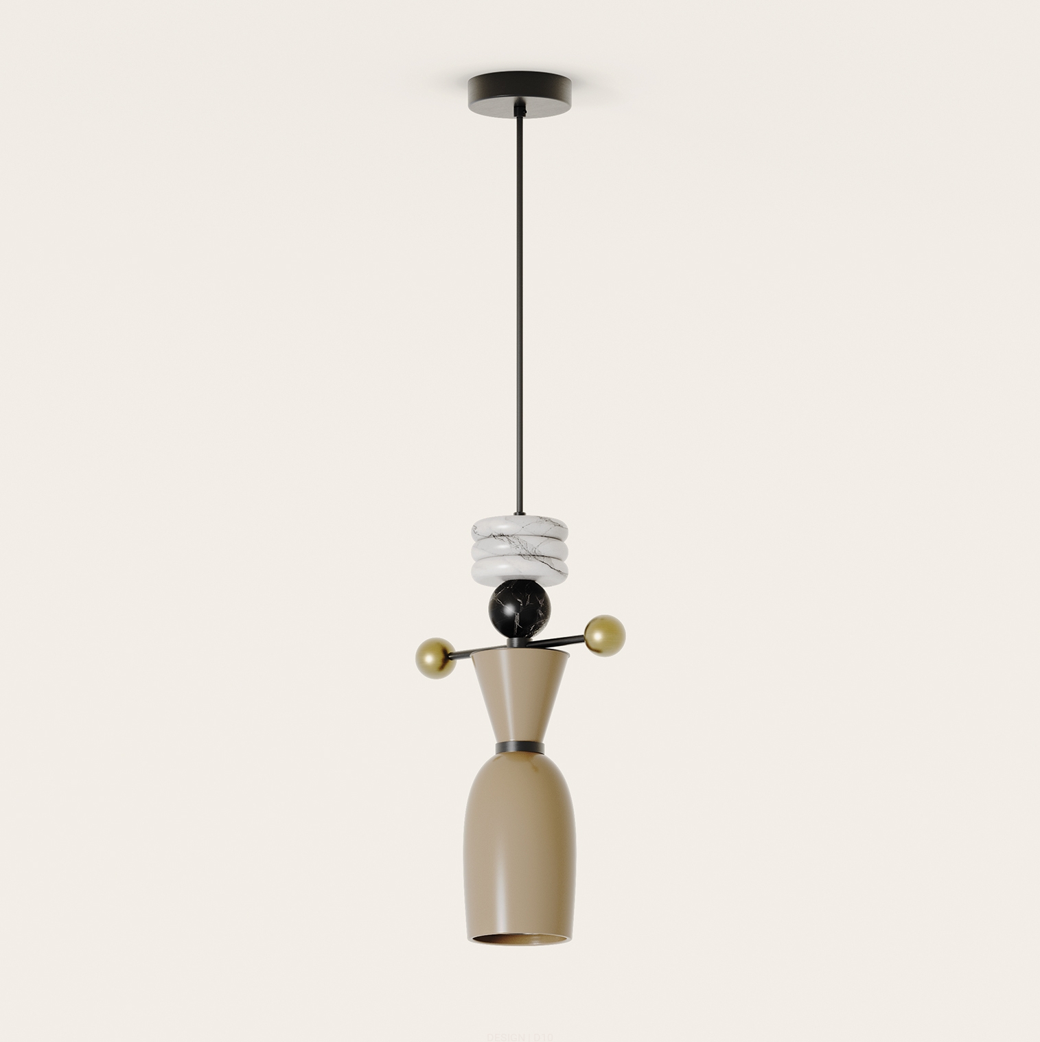 Wykonanie: Konstrukcja z metalu o kolorze matowy czarny, detale o kolorze postarzane złoto, dyski i kula z marmuru o kolorze czarnym / białym / zielonym / brązowym, szklany korpus o kolorze (góra/dół) z palety kolorów