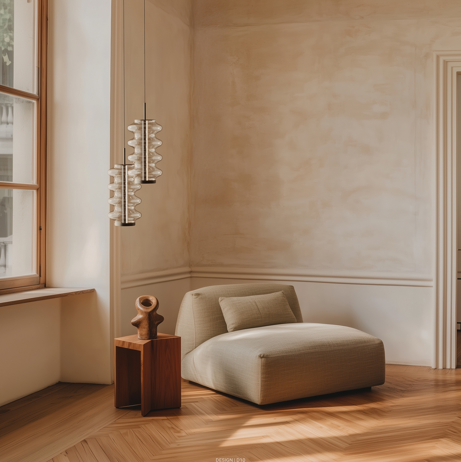 Vitree powstało z poszukiwania równowagi między solidnością metalu a lekkością szkła. Kolekcja odzwierciedla współczesną estetykę, w której czyste linie i przezroczystość współgrają z ciepłymi wykończeniami, takimi jak postarzane złoto, tworząc elegancki efekt. Jej projekt podkreśla wartość światła jako elementu zarówno architektonicznego, jak i emocjonalnego, przeznaczonego zarówno do wnętrz mieszkalnych, jak i projektów kontraktowych. Vitree została zaprojektowana tak, aby idealnie komponować się z nowoczesnymi, minimalistycznymi lub wyrafinowanymi wnętrzami, nadając im odrobinę ciepła.