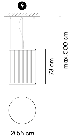 Wykonanie: Górny pierścień: aluminium, Dolny pierścień: mosiądz, Dyfuzor: poliwęglan, Nici: PES FR; Pierścienie i podsufitka o kolorze czarnym NCS S 8500-N
