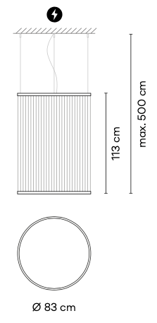 Wykonanie: Górny pierścień: aluminium, Dolny pierścień: mosiądz, Dyfuzor: poliwęglan, Nici: PES FR; Pierścienie i podsufitka o kolorze czarnym NCS S 8500-N