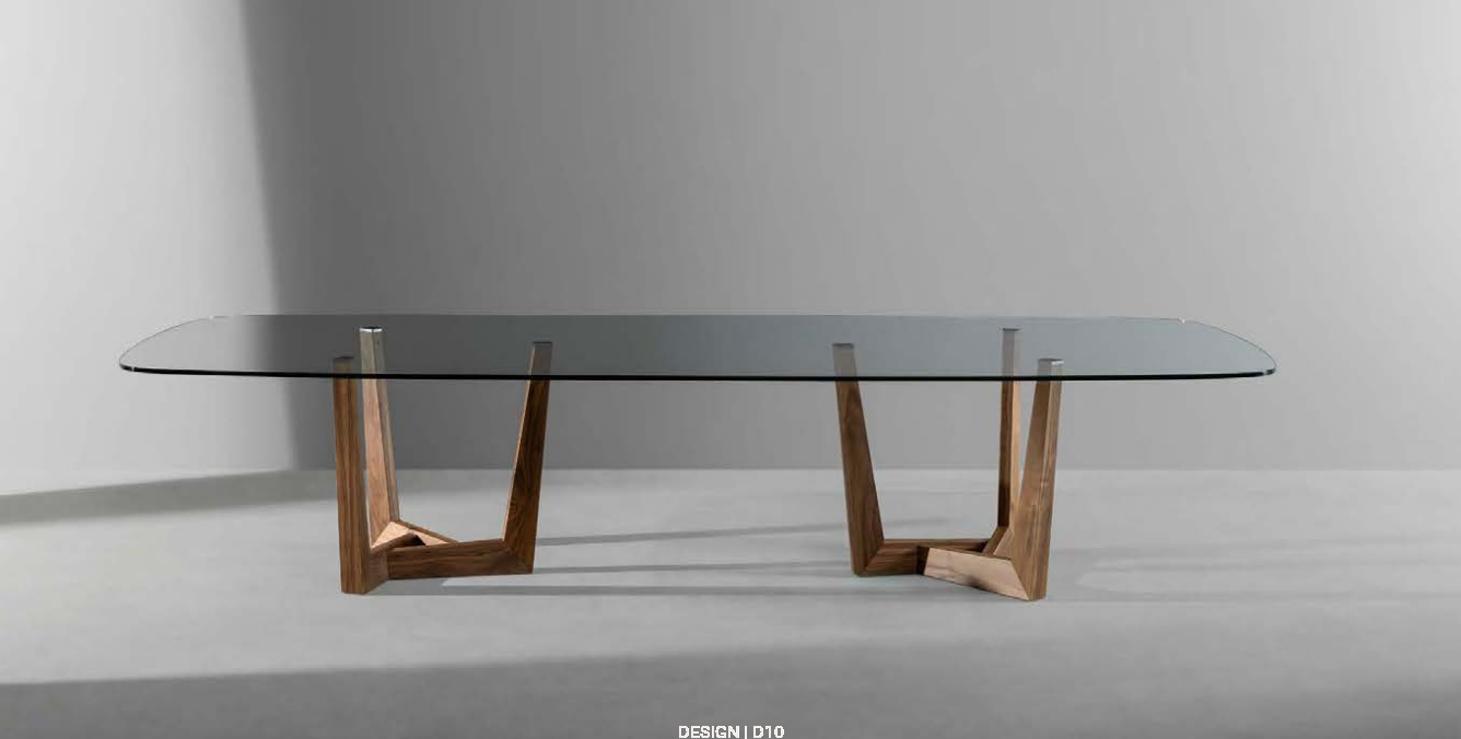 Stół Art Wood to nowoczesny projekt łączący w sobie wysokiej jakości materiały, lekkość formy i precyzję wykonania. Zgrabny blat szklany opiera się na drewnianej podstawie z orzecha amerykańskiego w kształcie przenikających się trapezów. Stół bardzo dobrze będzie się prezentował zarówno w nowoczesnej jadalni, jak i w klasycznym gabinecie. Z powodzeniem można go również zastosować w restauracji lub sali konferencyjnej.