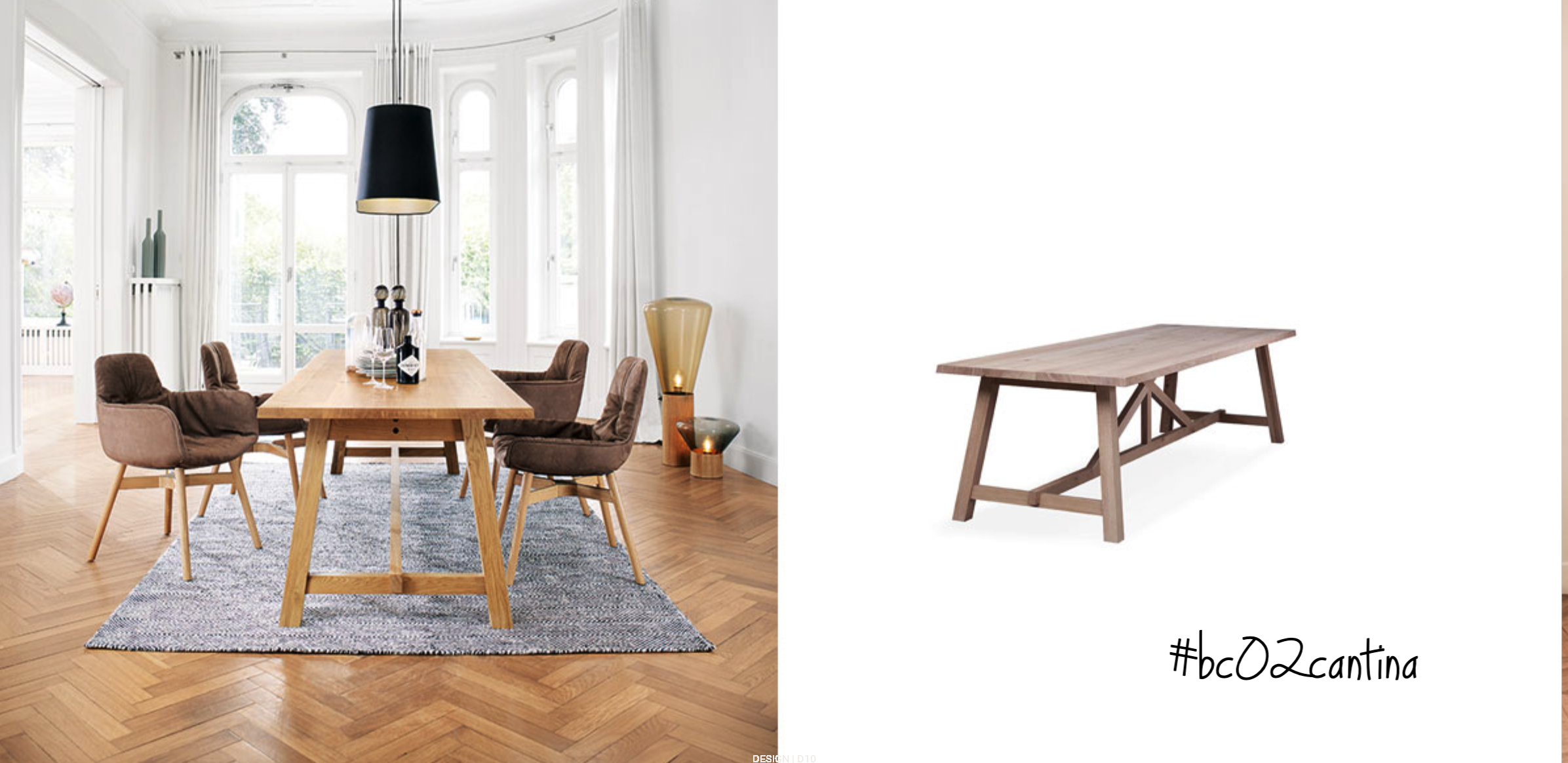 Nowoczesna interpretacja tradycyjnego stylu życia: BC 02 Cantina autorstwa duetu projektantów Birgit Hoffmann i Christopha Kahleyssa inspirowana jest rustykalnym stołem „Jogltisch”, który niegdyś stanowił centralny ośrodek wiejskiego życia w każdym gospodarstwie domowym w austriackiej Styrii. Wokół niego ludzie jedli, rozmawiali, świętowali i opłakiwali – jest to miejsce, w którym można się spotkać przy każdej okazji.