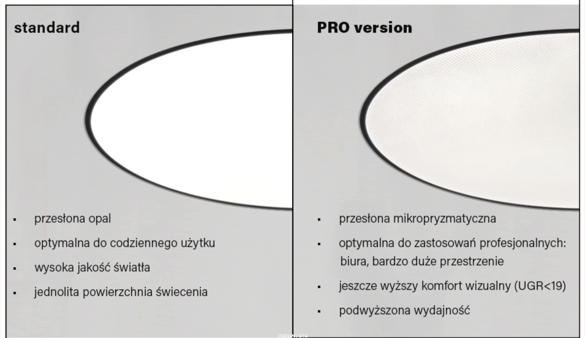 Lampy dostępne w wersjach: wpuszczanych, natynkowych i wiszących.