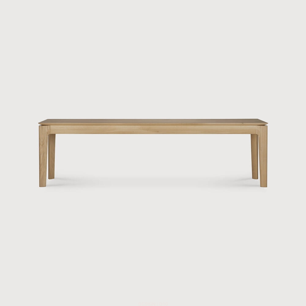 Ławka Bok od Ethnicraft to elegancki i minimalistyczny mebel wykonany z litego drewna dębowego lub tekowego. Jej smukła konstrukcja i precyzyjnie wykonane detale nadają jej nowoczesny, a jednocześnie ponadczasowy wygląd. Ławka jest dostępna w różnych długościach, co pozwala na dopasowanie jej do różnych przestrzeni. Jest idealna do wnętrz.