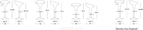 Bombo to futurystyczny stołek barowy, najbardziej rozpoznawalny produkt Magis. Podstawa, noga, podnóżek i uchwyt zostały wykonane ze stali nierdzewnej. Siedzisko z tworzywa sztucznego ABS lub z polerowanego aluminium. Wysokość regulowana jest za pomocą tłoka gazowego, który można też dokupić osobno. Oferowany jest również zestaw pielęgnacyjny do czyszczenia polerowanego aluminium.