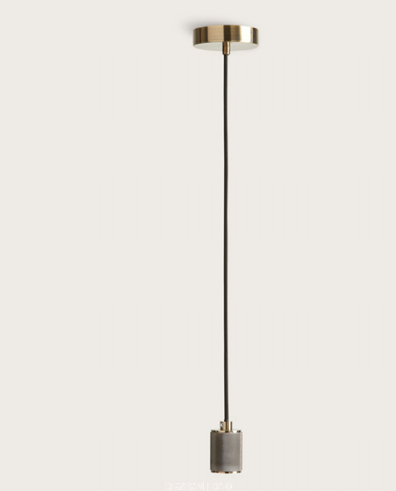 Mocowanie z kablem do lamp sufitowych na jedną żarówkę. Podstawa oraz szyjka wykonane w całości z metalu. Dostępne w brązie.