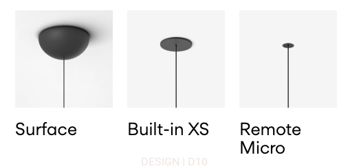 Wykonanie: konstrukcja z aluminium, klosz z poliestru o kolorze beżowym / terra red / zielonym, podsufitka Surface / Built-in XS / remote Micro