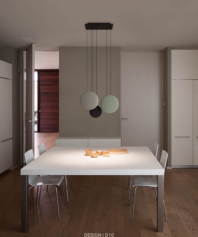 Cosmos to wisząca lampa- rzeźba. Kolekcja inspirowana kosmicznym krajobrazem składa się ze spłaszczonych dysków o różnych rozmiarach, tworzących optyczną iluzję wiszących kul, które zdają się unosić w powietrzu. Lampy posiadają chłodne barwy, co w połączeniu z zastosowaniem technologii LED, która sprawia, że źródło światła jest niedostrzegalne, tym bardziej przywodzi na myśl planety i tworzy prywatną galaktykę.