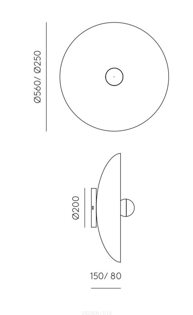 Kinkiet o ciekawej okrągłej formie, z okrągłym wklęsłym kloszem i żarówką umiejscowioną dokładnie na środku. Wykonany został w całości ze stali. Dostępne kolory: postarzane złoto oraz czarny.