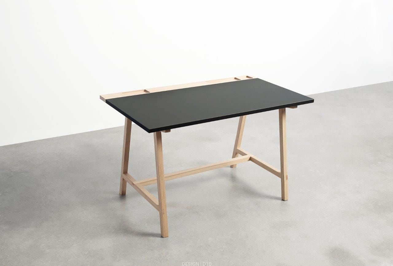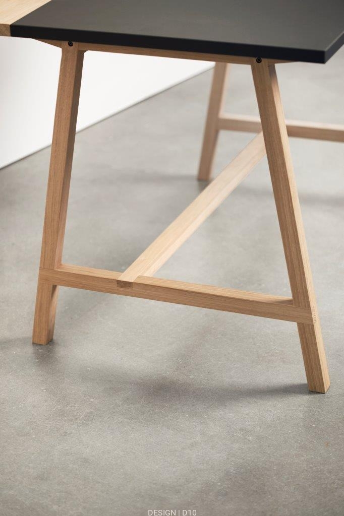 D1, to bardzo praktyczne, proste biurko, posiadające zarówno styl, jak i charakter. Biurko wykonane jest z praktycznej folii linoleum, która jest dostępna w 3 eleganckich kolorach. Rama nośna wykonana jest z litego dębu, impregnowanego nowym produktem "Wood Care", co wymaga minimum konserwacji.