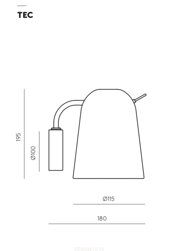 Wymiary: wysokość 19,5 cm, średnica podstawy 10 cm, średnica klosza 11,5 cm, odległość od ściany 18 cm.