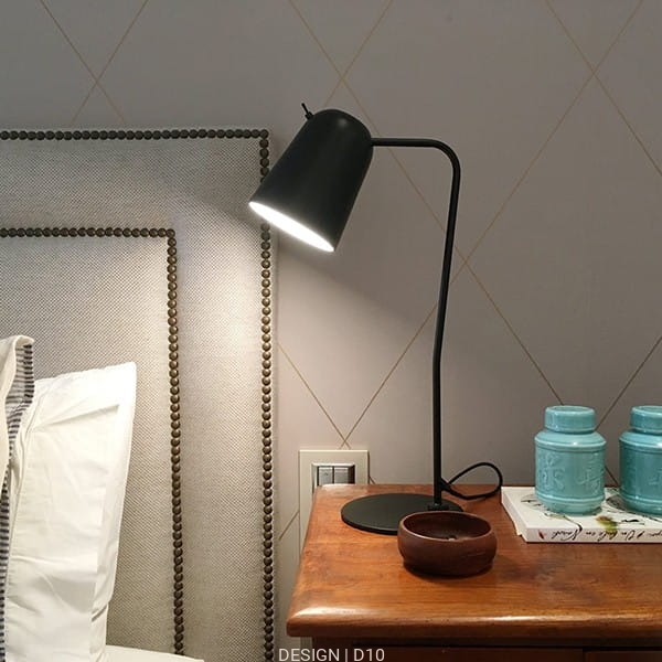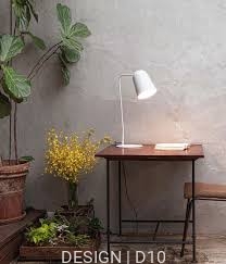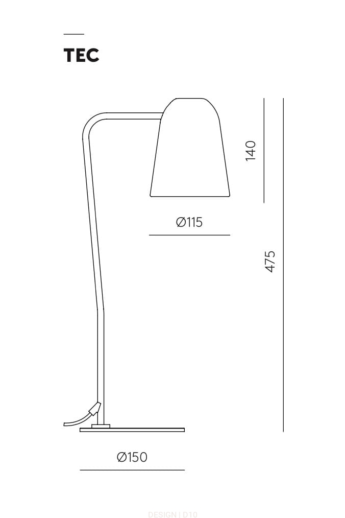 Metalowa lampa stołowa, której charakter oddaje prostota i minimalizm. Kształt klosza przypomina odwrócony kielich. Trzon składający się z cienkiej rurki opiera się na płaskiej podstawie. Całość wykonana z metalu. Dostępna w wersji z przełącznikiem on-off wmontowanym w klosz. Lampa występuje w opcji kolorystycznej biały oraz czarny mat.