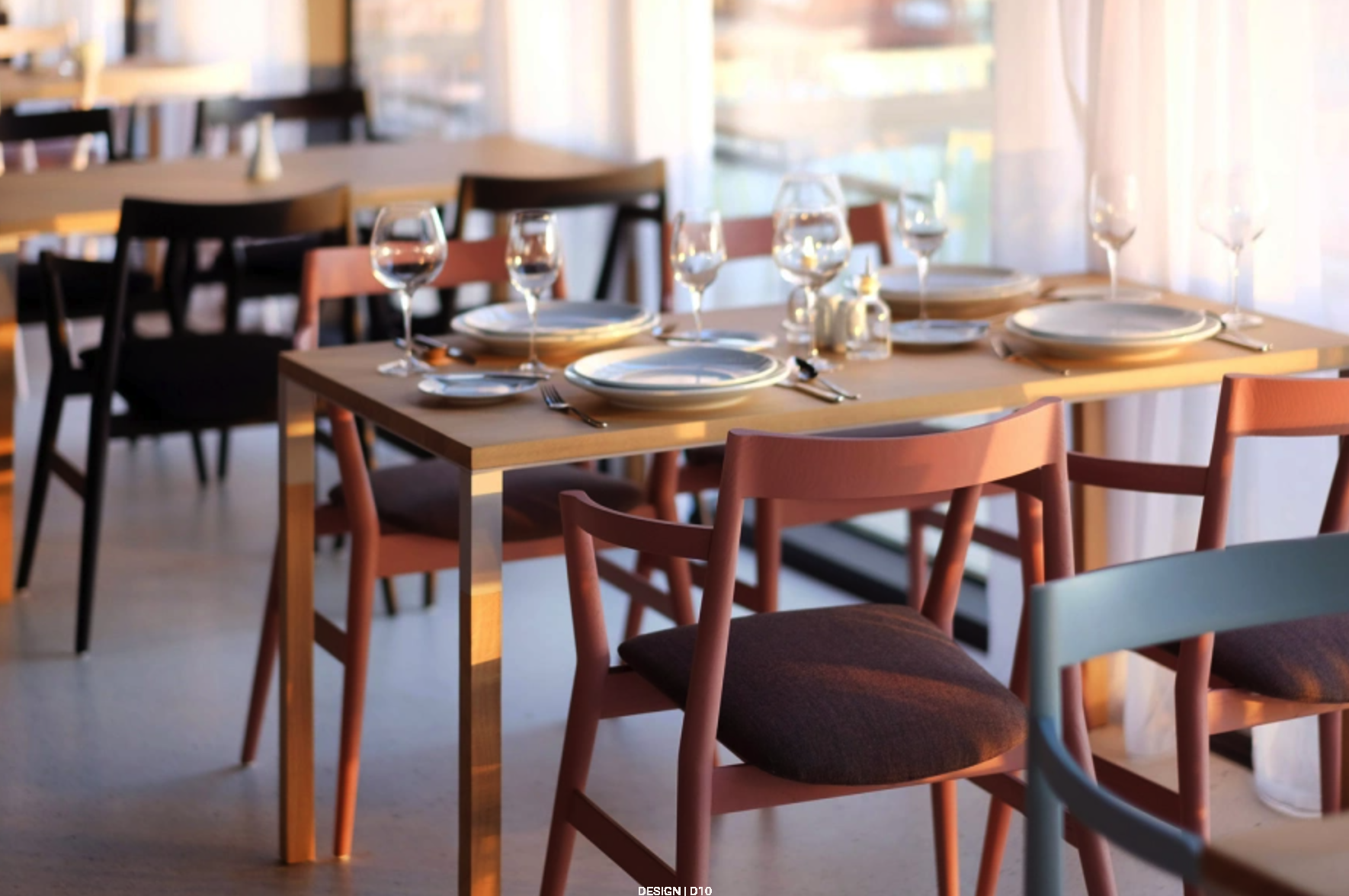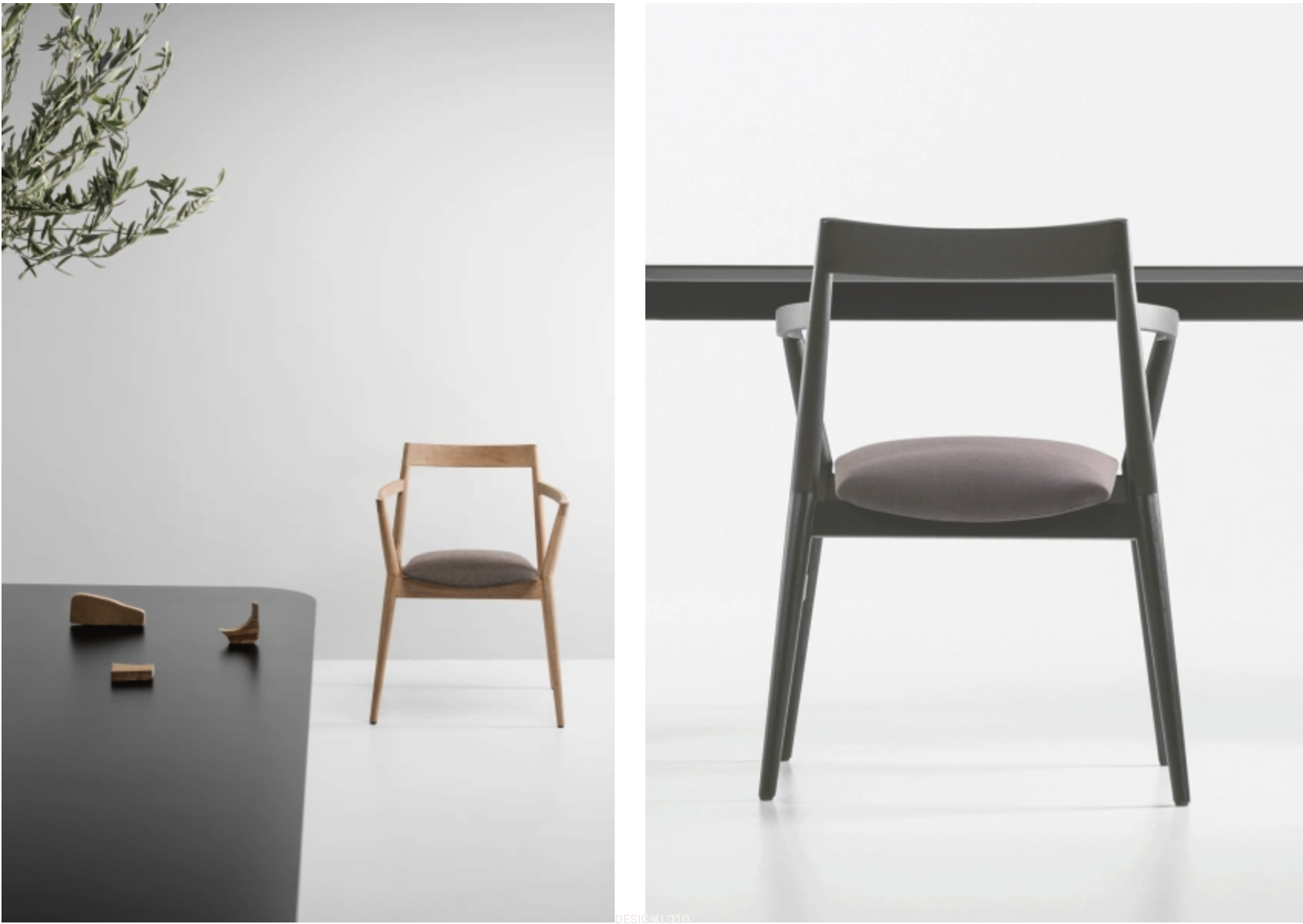 Zinterpretowaliśmy na nowo tradycyjną typologię drewnianego krzesła z podłokietnikami, wykorzystując charakterystyczne „przerwanie” w geometrii przednich nóg. Zaokrąglona geometria toczonych podłokietników i oparcia znajduje odzwierciedlenie w soczewkowych poduszkach. Przede wszystkim funkcjonalne przecięcie nóg i poprzecznych prętów siedziska zachowuje dokładność geometryczną. Wyczuwalne dotykiem przecięcia oparcia i podłokietników zostały stworzone zgodnie z zasadami organicznej transformacji objętości. Te kontrasty pomiędzy elementami i skrzyżowaniami „miękkimi” i „twardymi” kształtują charakterystyczny język formalny Dobrej.