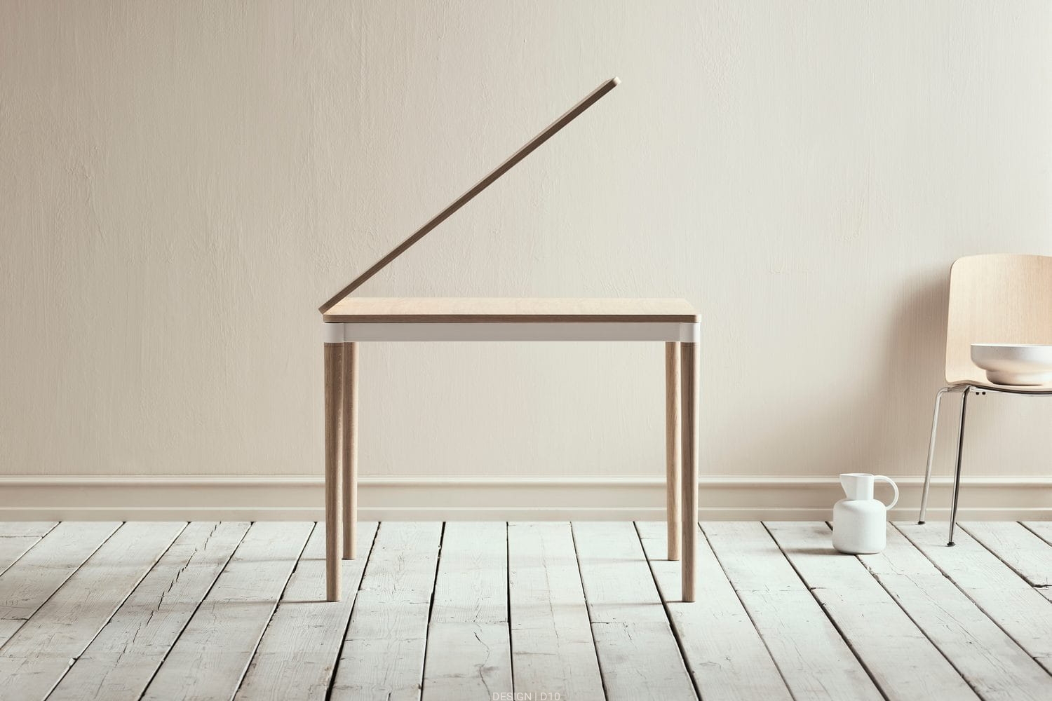 DoubleUp to stół, który można w prosty sposób składać i rozkładać. Dzięki różnym konfiguracjom jest on niezwykle funkcjonalny. Delikatny kształt nóg dodaje mu lekkości. Stół posiada dopracowane detale i wysokiej jakości materiały, które gwarantują satysfakcję z użytkowania. Blat wykończony lakierowanym fornirem dębowym naturalnym lub bielonym.