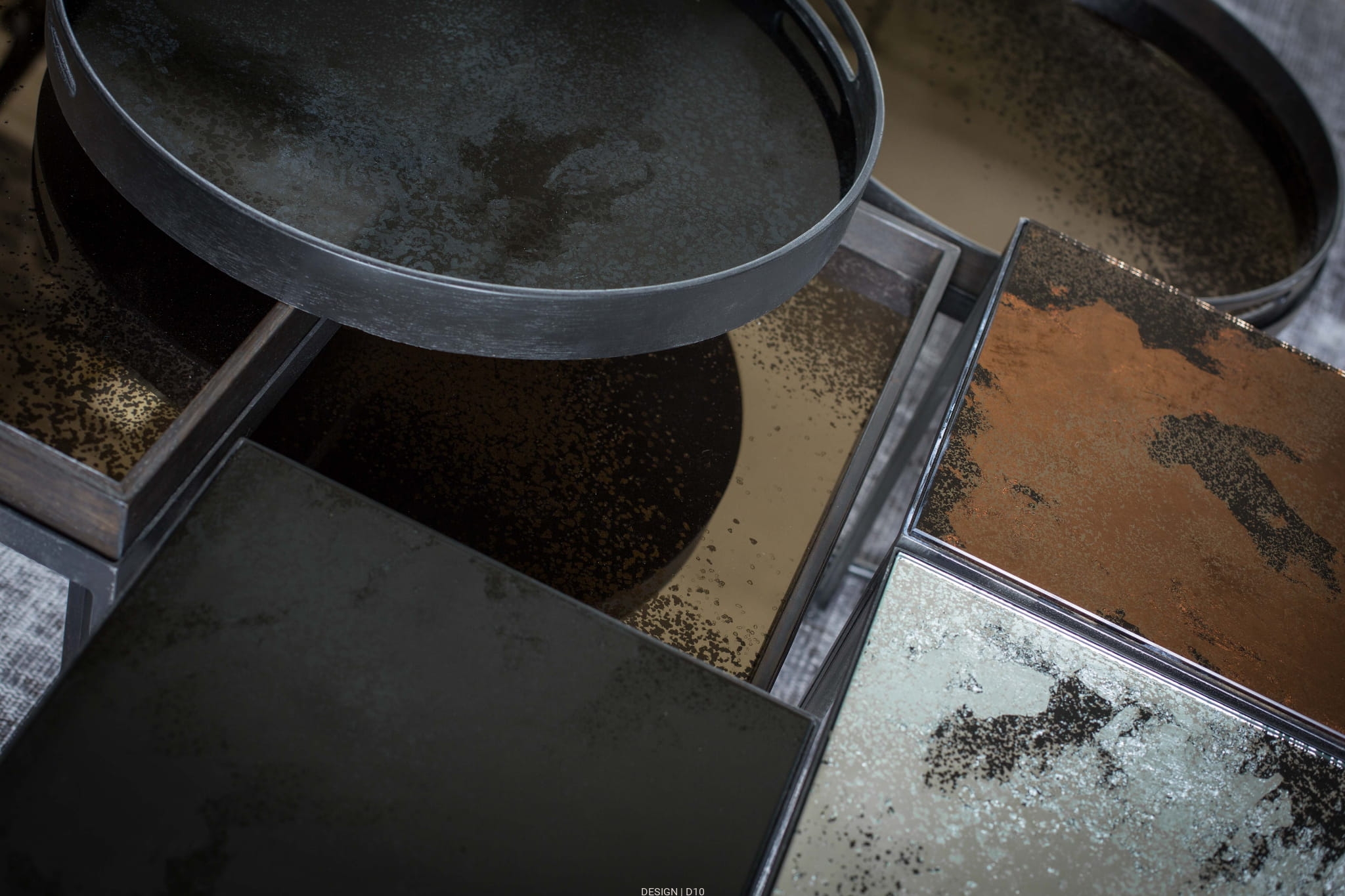 Charcoal Mirror, to jedna z wielu tac dostępnych w ofercie Ethnicraft. Efekt postarzanego lustra o kolorze węgla tworzy niezapomniany efekt, jednocześnie zachowując pierwotną magię lustra. Tacki świetnie sprawdzą się w połączeniu ze stolikami Ethnicraft, lub samodzielnie jako tace lub ozdoby na półkach.