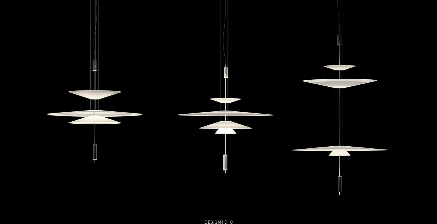 Flamingo to wisząca lampa, składająca się z kilku elementów, które łatwo można zmieniać aby otrzymać zupełnie inną formę przestrzenną i inne efekty świetlne. Oddzielając źródło światła od oprawy składającej się z serii niezależnych stożkowych pierścieni zawieszonych na cienkich metalowych linkach. Lampa dostarcza pośrednie światło w przestrzeniach mieszkalnych lub bardziej skoncentrowane światło nad stołami w jadalni albo nad innymi elementami wymagającymi lepszego oświetlenia. Źródła światła LED mogą być umieszczone w różnych miejscach zapewniając ciekawe efekty świetlne zgodnie z oczekiwaniem. Światło może być skierowane do góry lub do dołu, a przechodząc przez prześwitujące termoplastyczne abażury zwiększa efekt lekkości. Lampa może być dostosowana do każdej przestrzeni, prywatnej jak i publicznej.