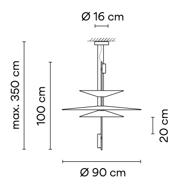 Wykonanie: dyfuzor: PMMA, Struktura: aluminium, Podsufitka i pręty: stal