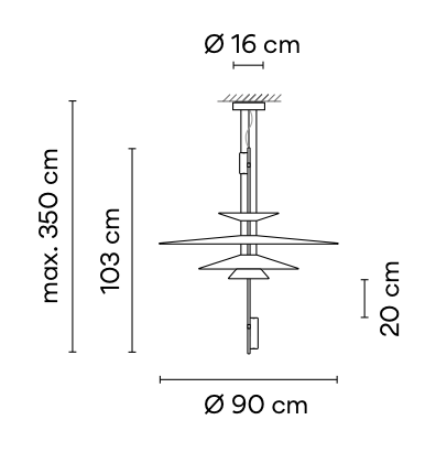 Wykonanie: dyfuzor: PMMA, Struktura: aluminium, Podsufitka i pręty: stal