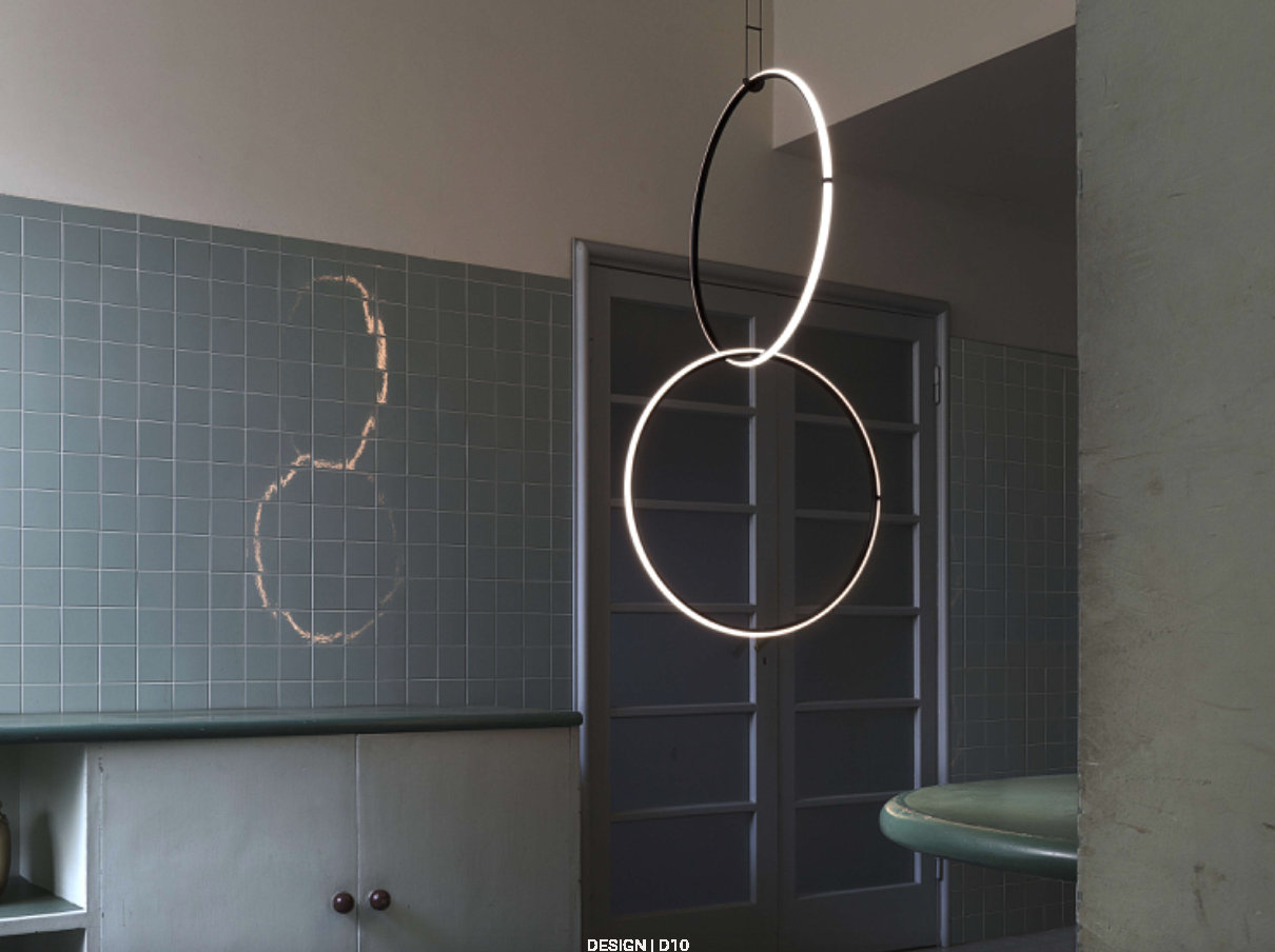 Arrangements od Flos to kompozycja oświetleniowa autorstwa Michaela Anastassiadesa, która łączy różne geometryczne formy – okręgi, linie, krople, kwadraty – w delikatne i lekkie świetlne układ zawieszone w przestrzeni. Lampa została zaprojektowana jak biżuteria – z myślą o równowadze, rytmie i elegancji.