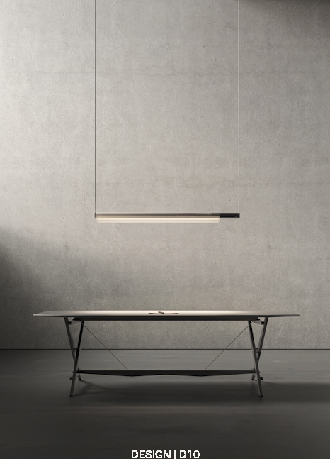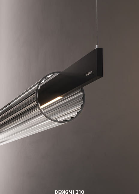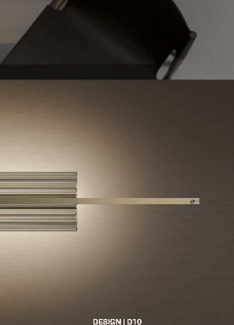 Minimalizm i lekkość definiują jego formę: pręty z anodowanego aluminium, które ożywiają eleganckie, nowoczesne oświetlenie.