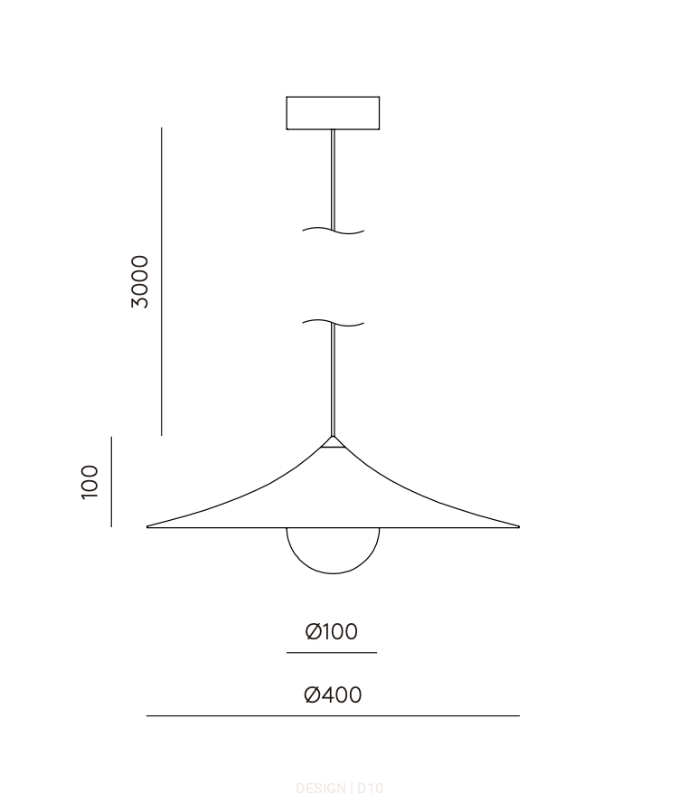 Wymiary: klosz Ø40 x H10 cm, wysokość zawieszenia regulowana, max 300 cm.