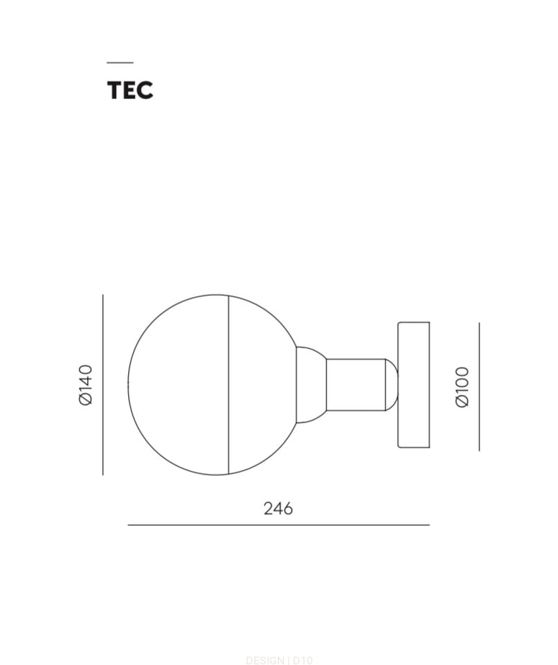 Kinkiet o minimalistycznym designie, składający się z metalowej obudowy która otula kulisty, szklany klosz z opalowego szkła, który jest jednocześnie żarówką (istnieje możliwość przezroczystego klosza). Dostępne kolory obudowy: złoty połysk, chrom, czarny mat.