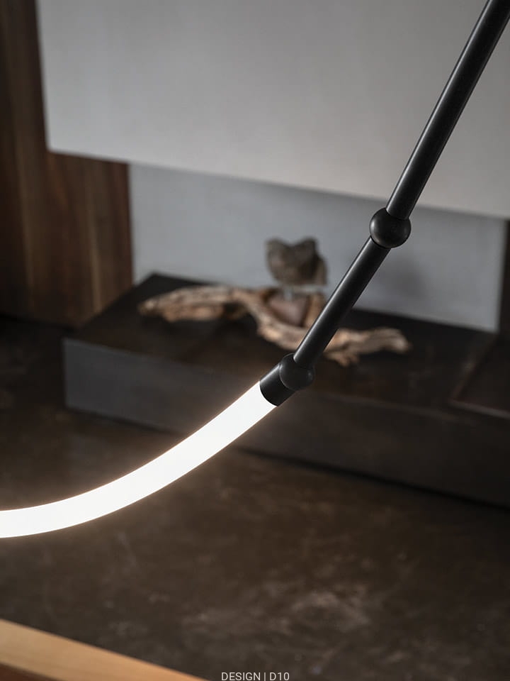 A - aluminiowy korpus lampy - dwa wykończenia: czarny mat albo mosiądz mat