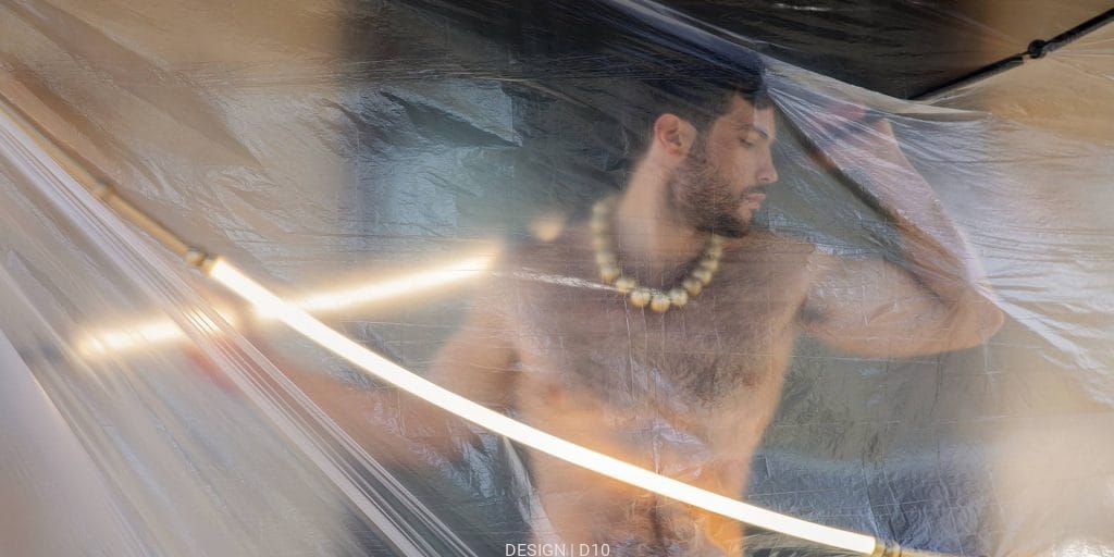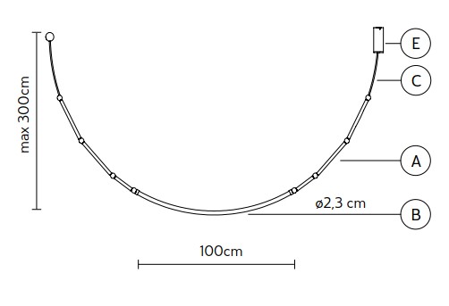 Naszyjnik światła składający się z kul i cylindrów z anodowanego aluminium
