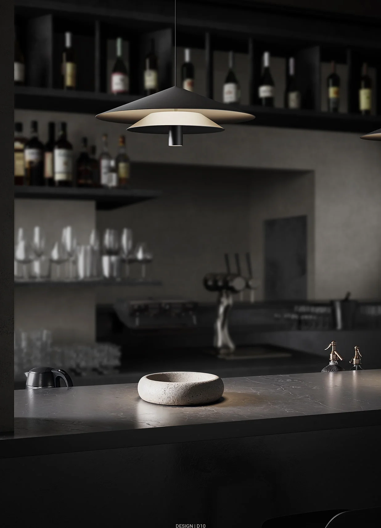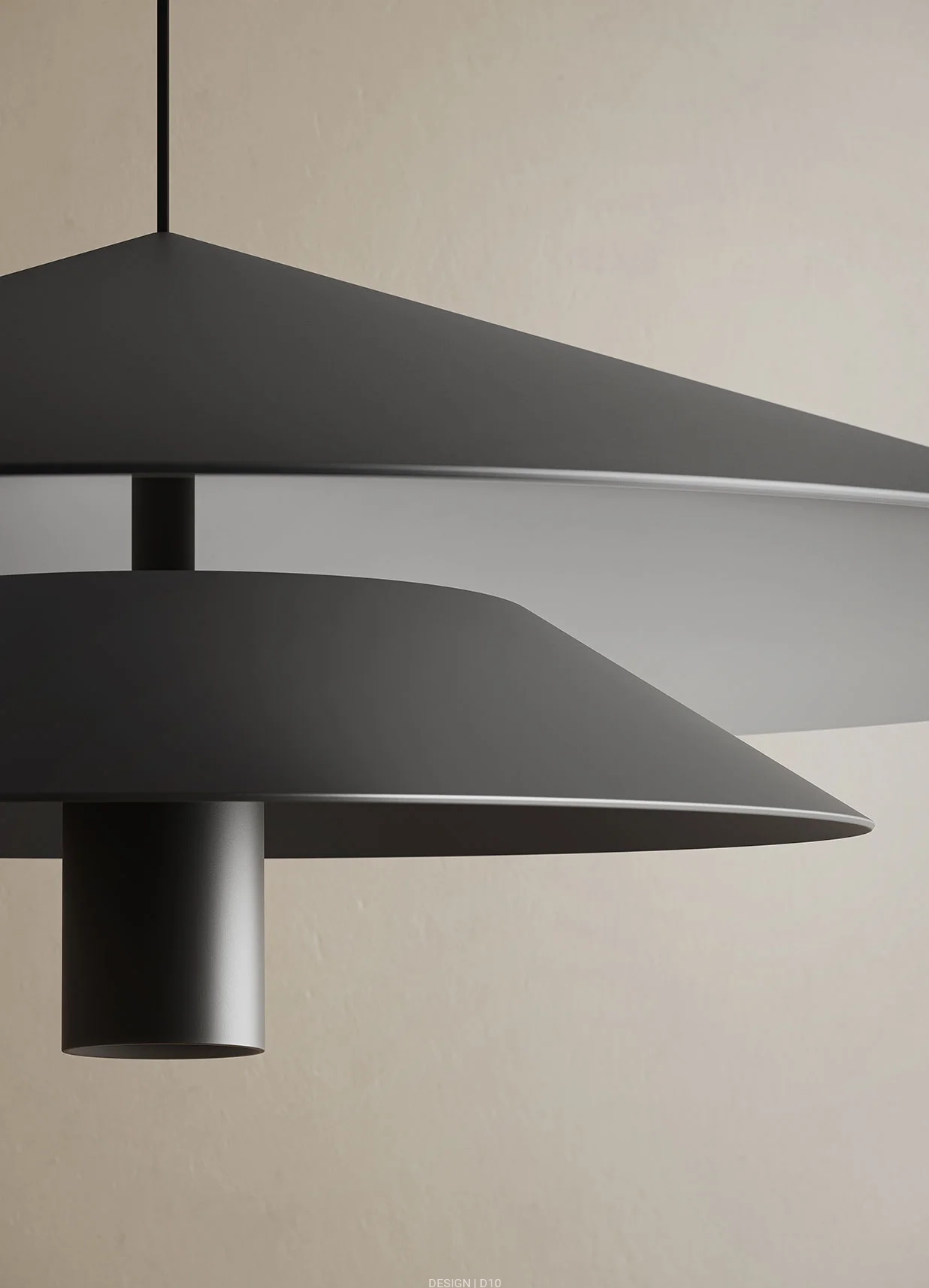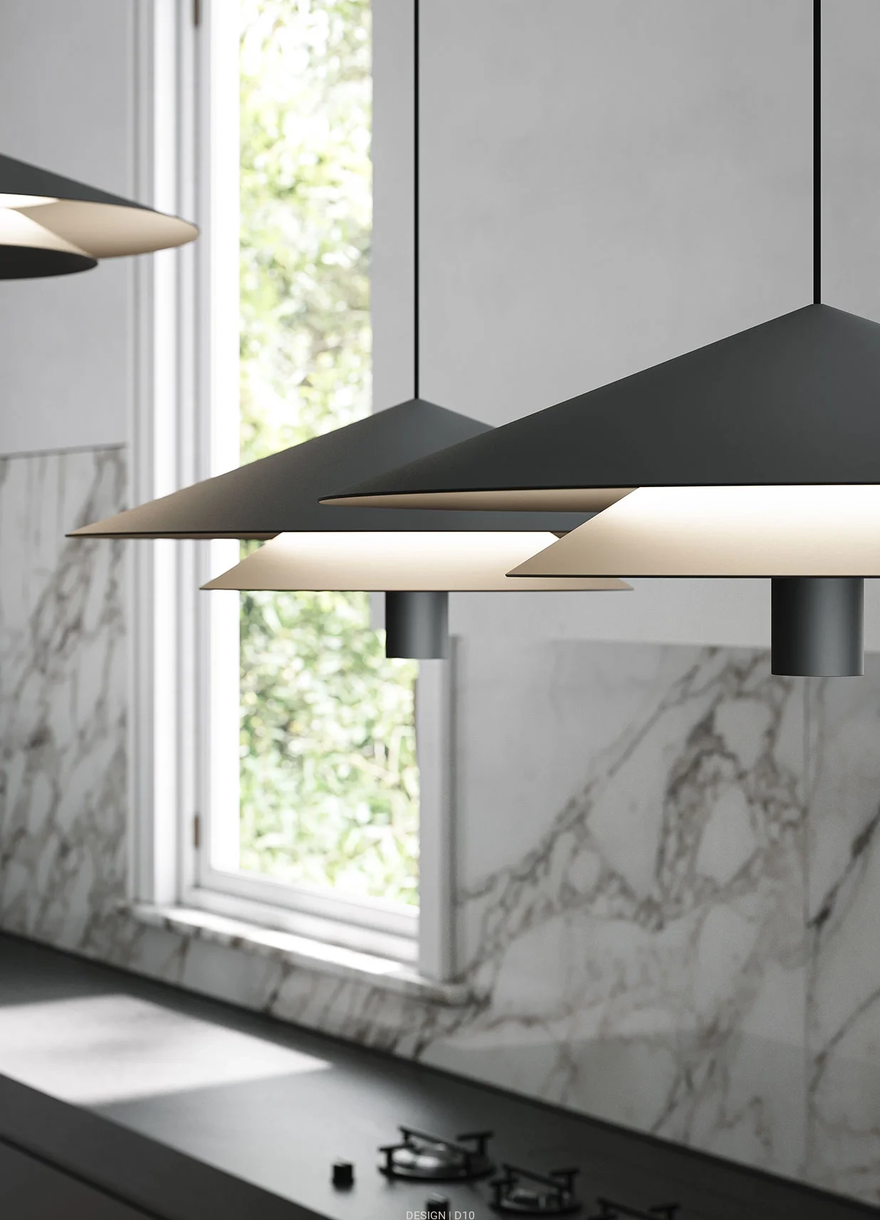 Wykonana z matowego, czarnego aluminium, doskonale sprawdzi się nad wyspą kuchenną lub stołem jadalnym, a także obok łóżka jako oświetlenie akcentujące, tworząc intymną i wyrafinowaną atmosferę.