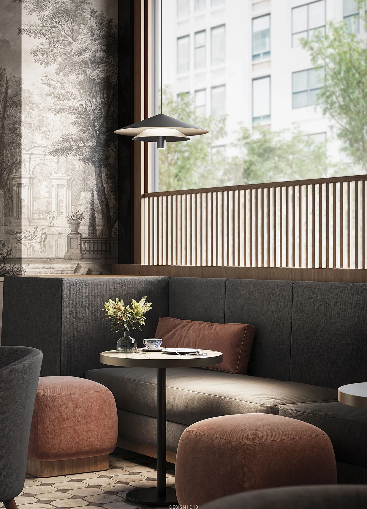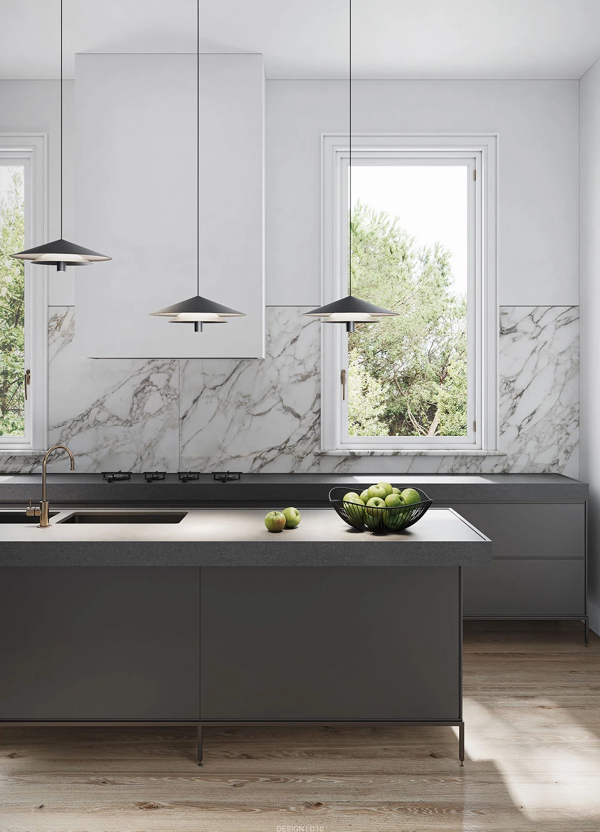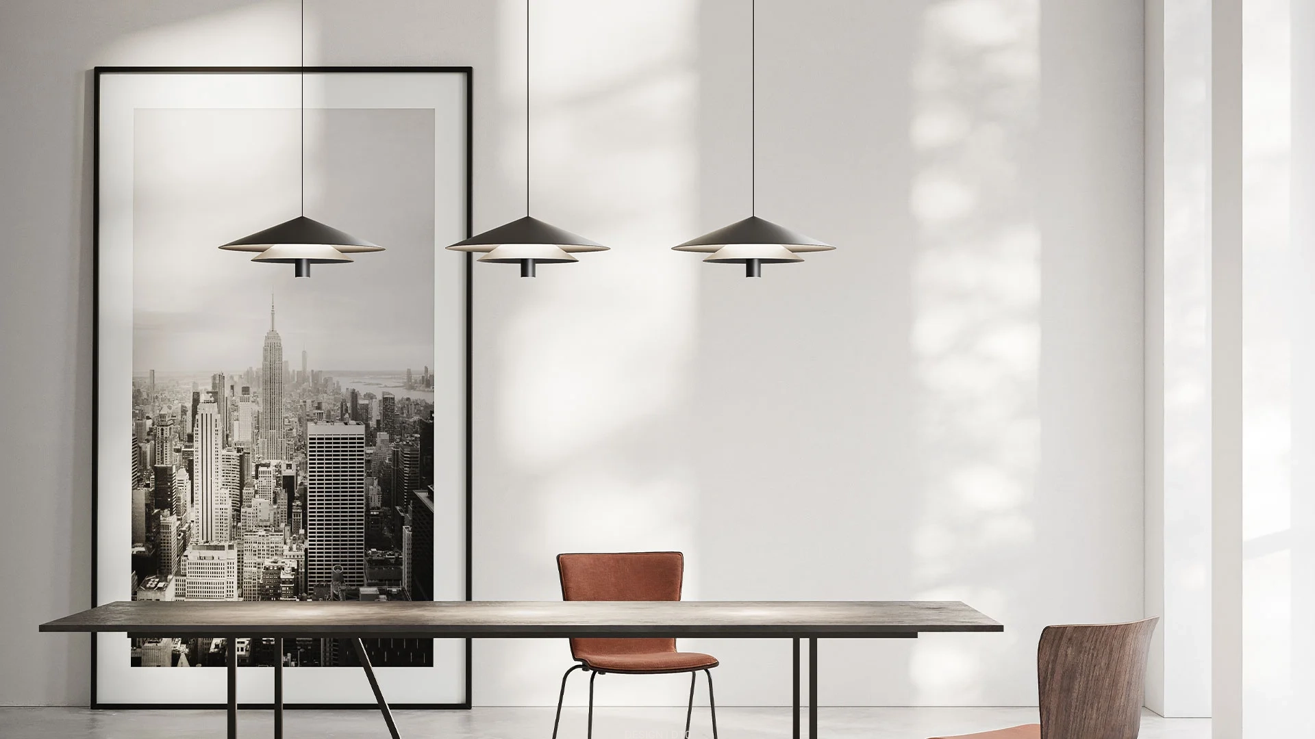 Wykonana z matowego, czarnego aluminium, doskonale sprawdzi się nad wyspą kuchenną lub stołem jadalnym, a także obok łóżka jako oświetlenie akcentujące, tworząc intymną i wyrafinowaną atmosferę.