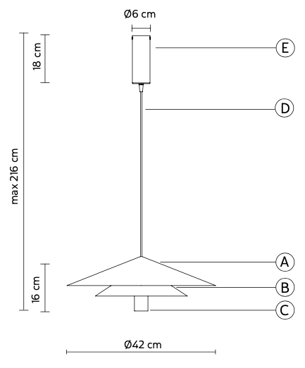 Wykonanie: klosz z aluminium o kolorze czarny matowy, środek największego klosza o kolorze biały matowy, podsufitka o kolorze czarnym