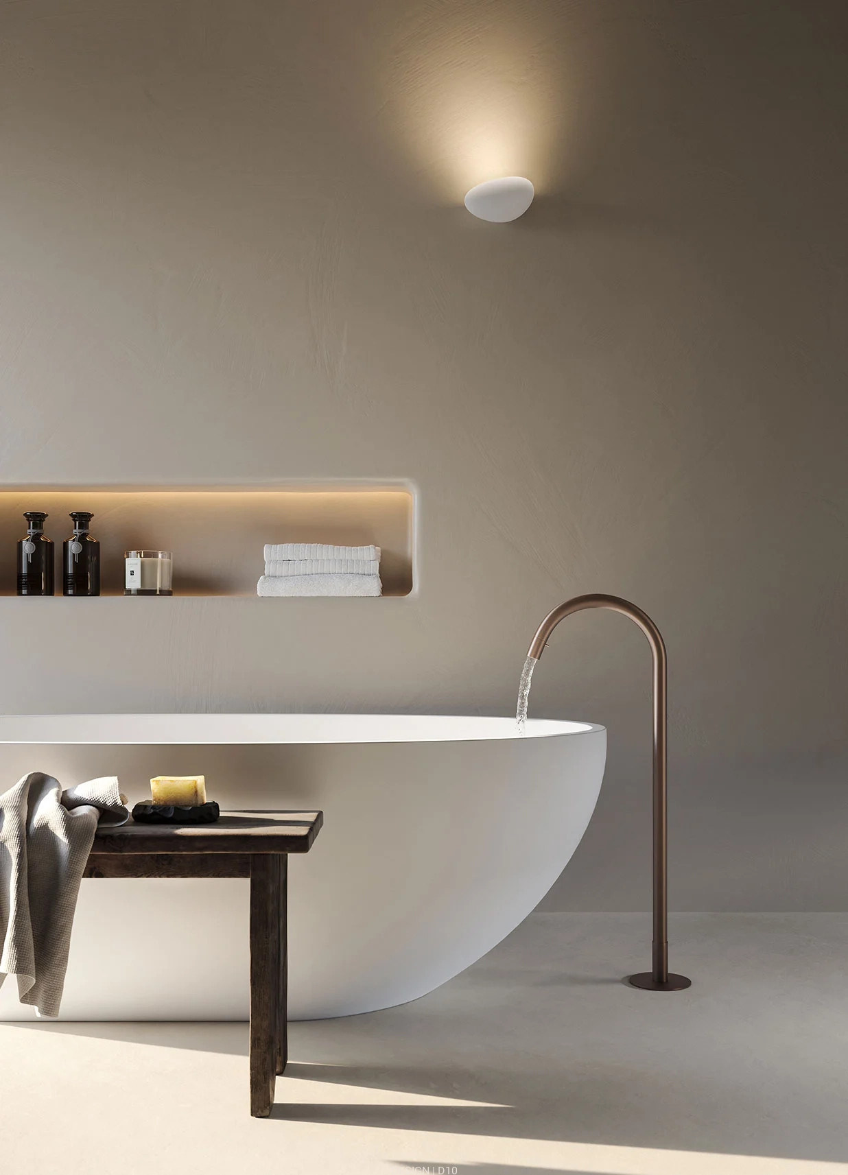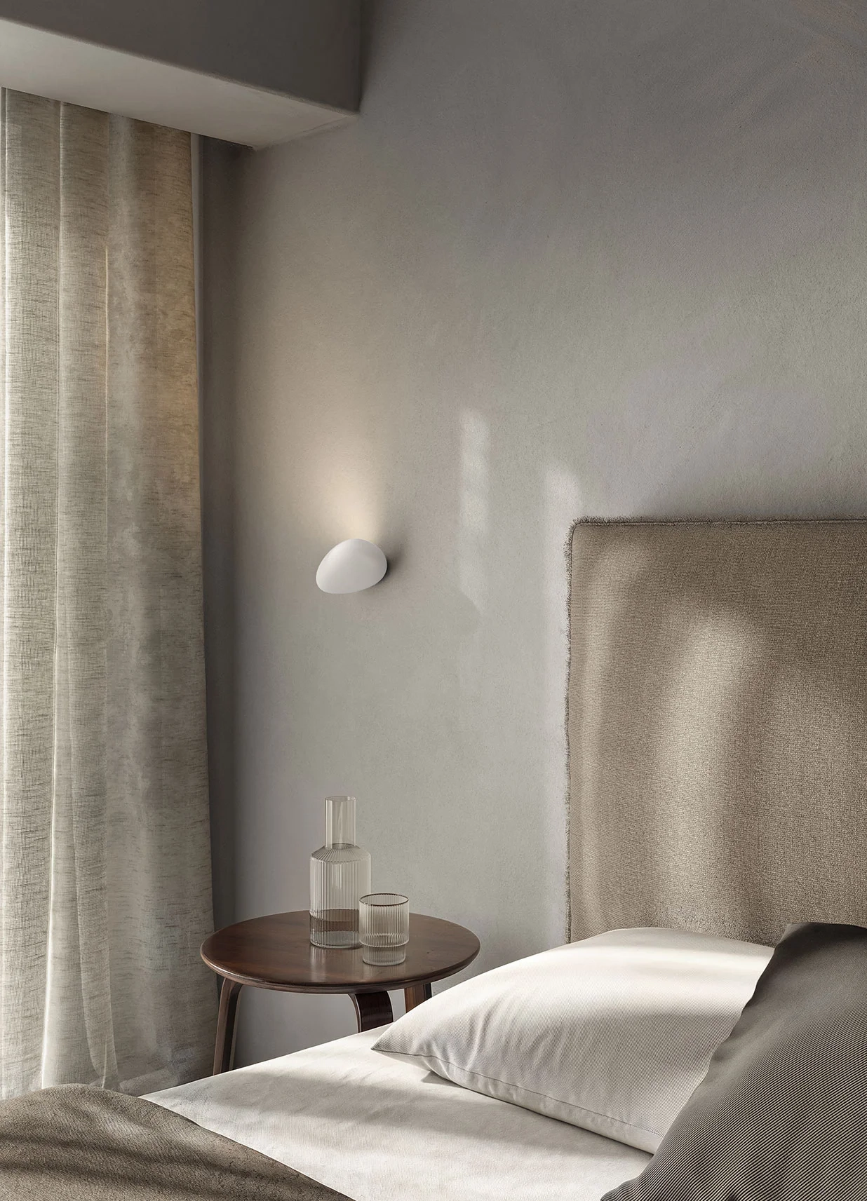 Flò dzięki swojej naturalnej i delikatnej budowie z żywicy przypomina wygładzony przez morze kamień, zgrabnie mieszając się z otoczeniem a jego światło łagodnie rozprasza się po ścianie. Flò to więcej niż tylko lampa - to element dekoracyjny który swietnie skomponuje się z każdym wnętrzem, subtelnie je ubogacając swoją wyjątkową budową.