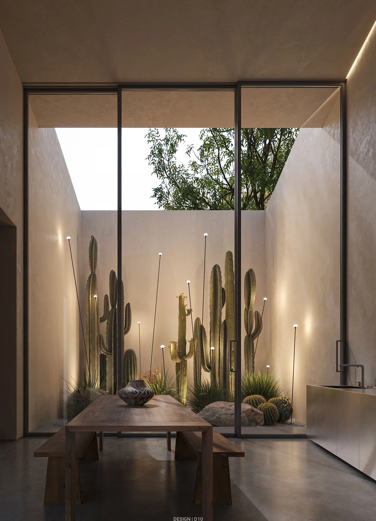 Jego istotna i nowoczesna struktura płynnie łączy się z minimalistycznymi lub naturalnymi ustawieniami, podkreślając piękno krajobrazu.