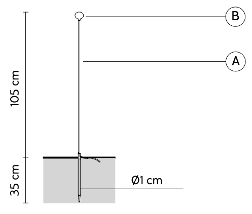 Można ją zainstalować zarówno za pomocą szpikulca do ziemi, jak i stałej podstawy.