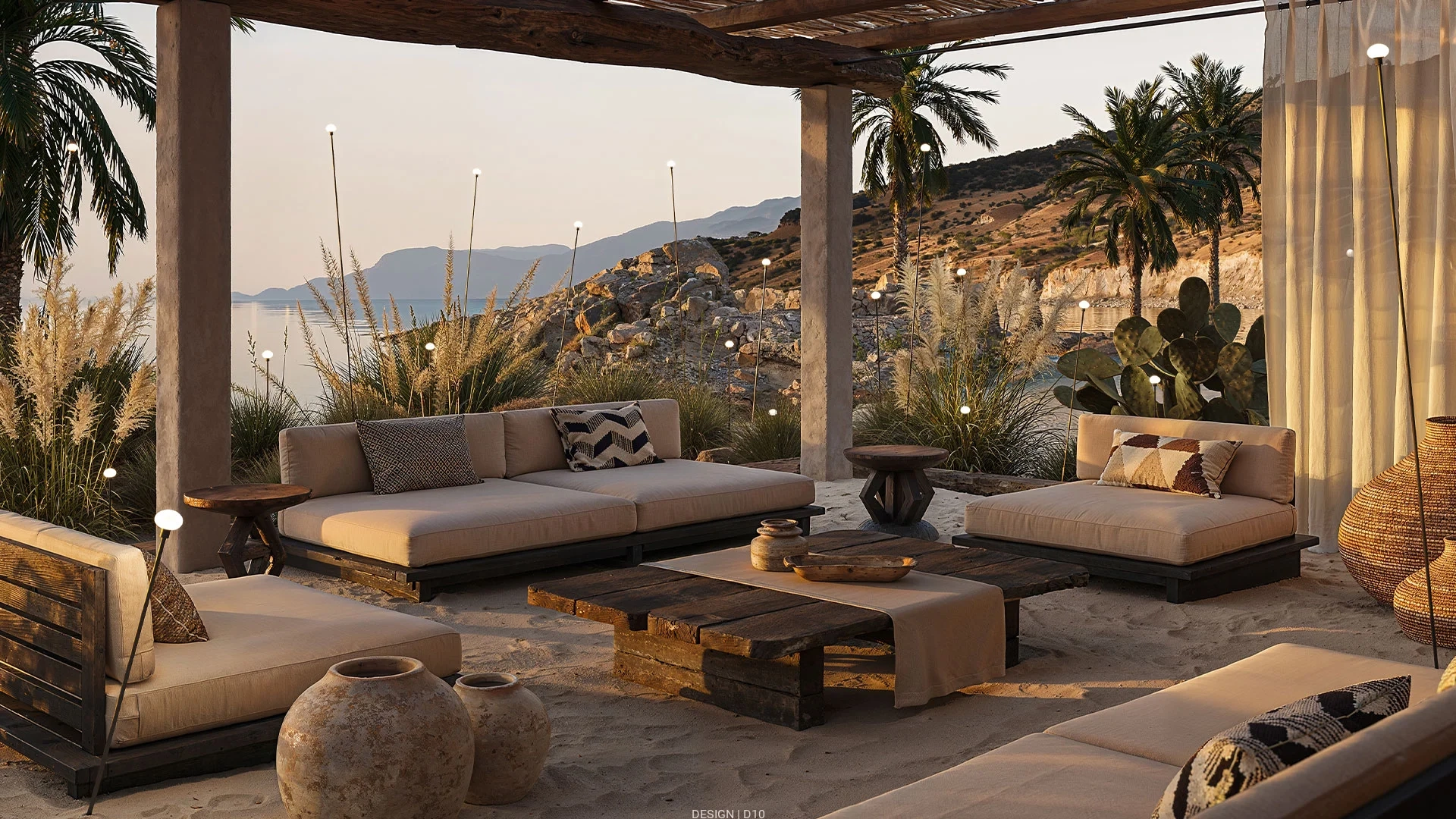 Jego istotna i nowoczesna struktura płynnie łączy się z minimalistycznymi lub naturalnymi ustawieniami, podkreślając piękno krajobrazu.
