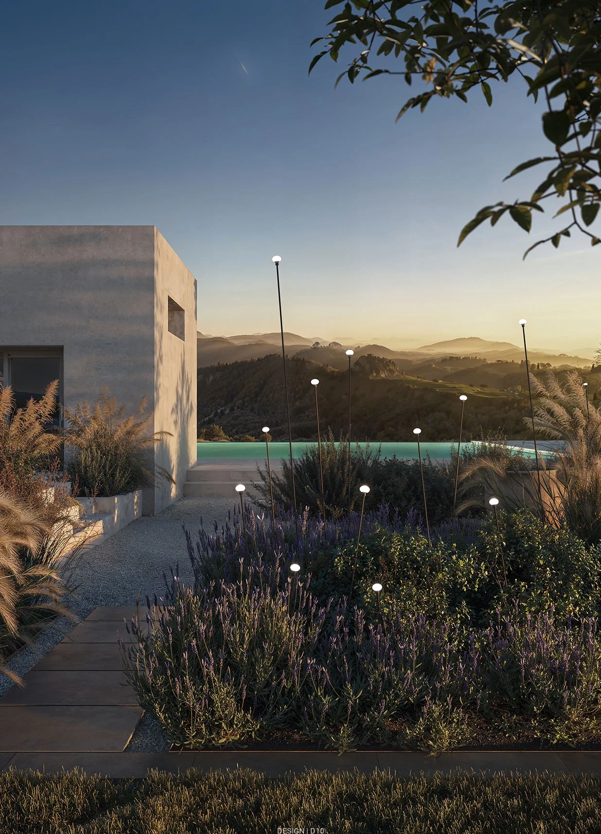 Minuit przywołuje na myśl pole smukłych, wydłużonych łodyg, zakończonych delikatnymi świetlistymi punktami przypominającymi małe zawieszone kule. Zainspirowana naturalną prostotą polnych kwiatów, zapewnia miękkie, rozproszone światło, idealne do tworzenia czarującej atmosfery w ogrodach, na dziedzińcach lub tarasach.