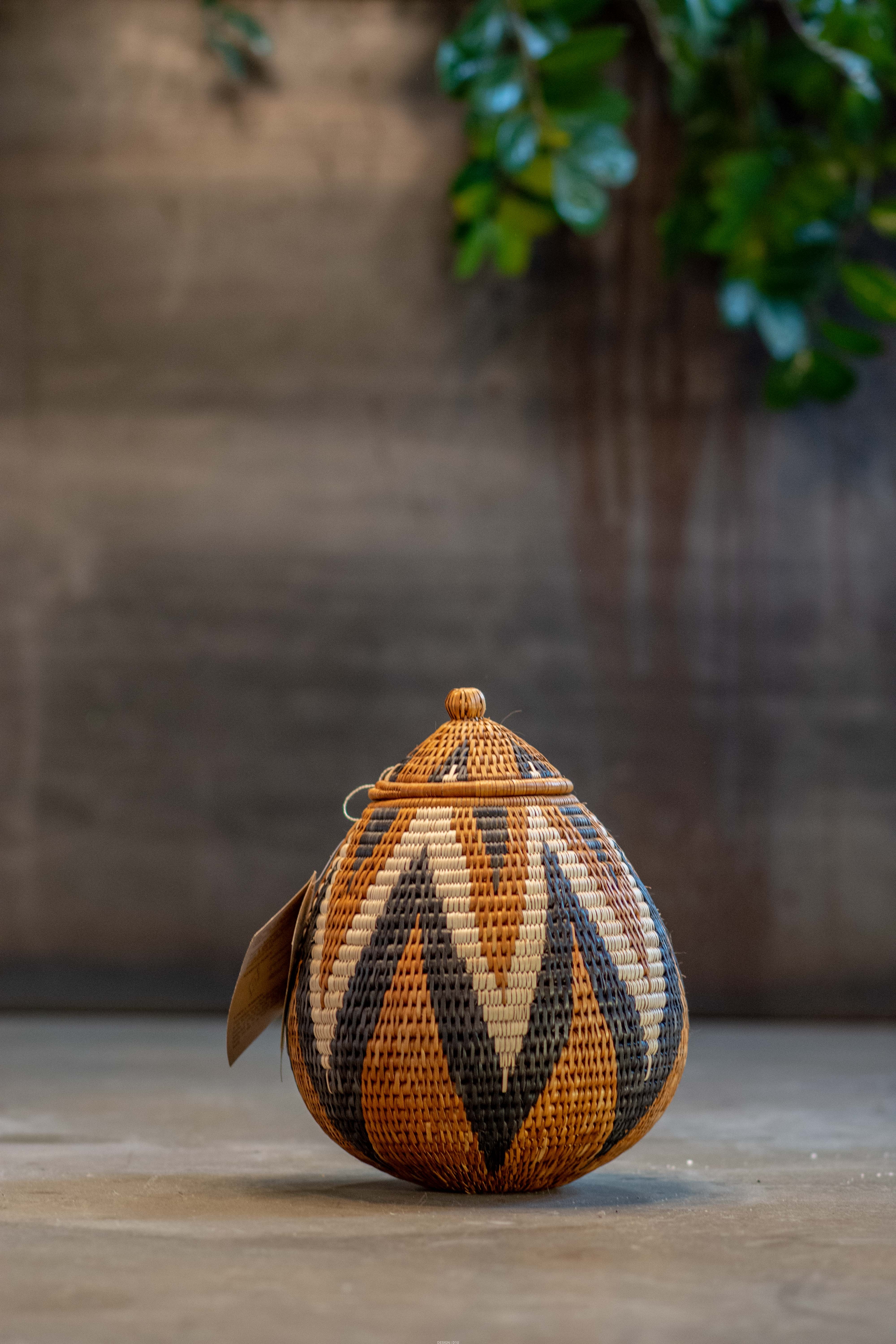 Ręcznie plecione kosze z RPA stanowią wyjątkowe połączenie afrykańskiej tradycji z naturalnym rzemiosłem. Dzięki wykorzystaniu naturalnych materiałów kosz wprowadza do wnętrza ciepło oraz unikalny wygląd, idealnie wpisując się w estetykę boho czy etno. Solidne wykonanie gwarantuje trwałość, a w pełni ręczny proces wyplatania zapewnia, że każdy egzemplarz jest wyjątkowy.
