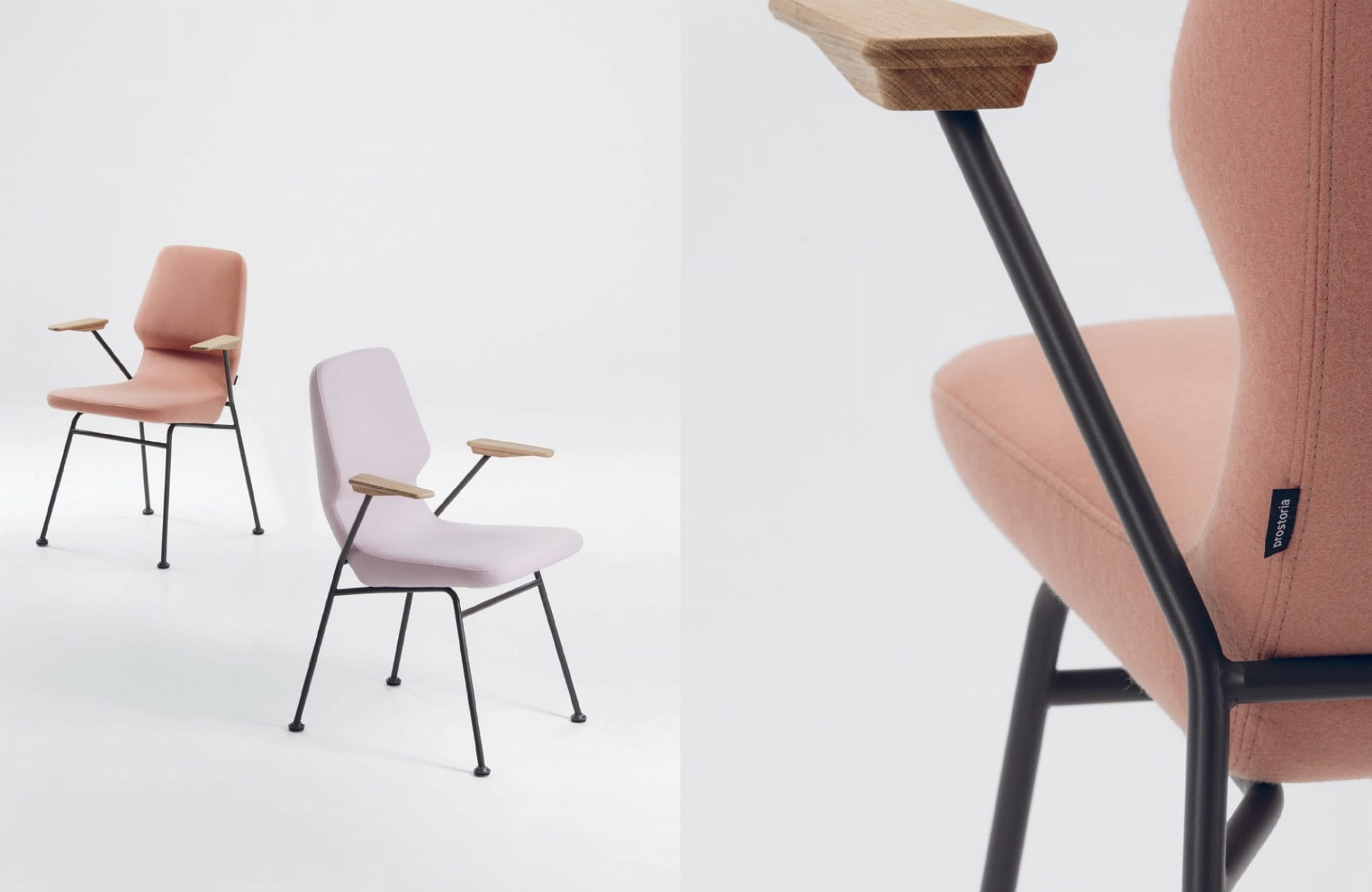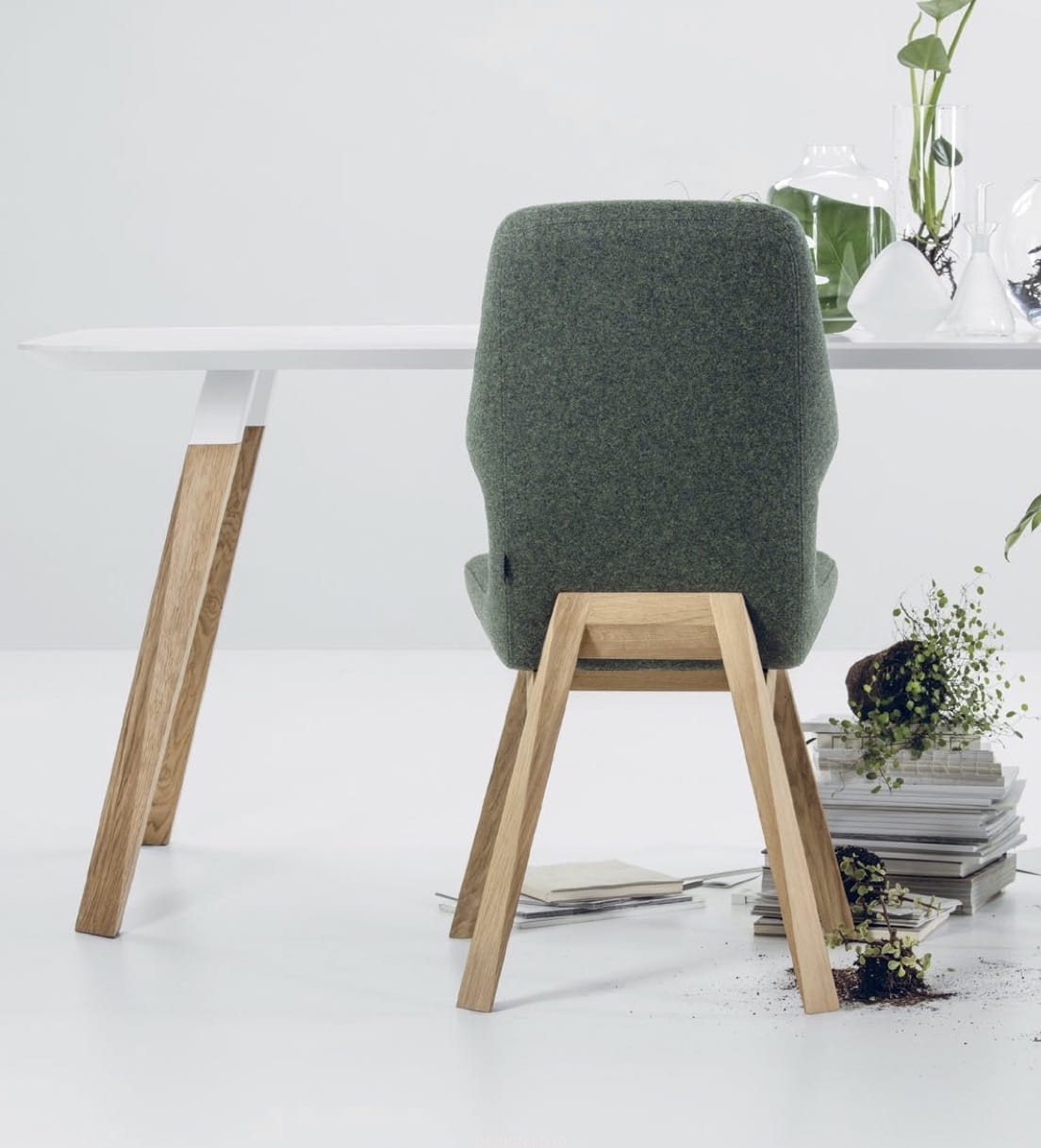 Oblique, to nowoczesne krzesło o lekkim i ciekawym kształcie retro. Dostępny w wersjach z podłokietnikami, oraz na metalowej podstawie. Praktyczność krzesła polega na utrzymaniu kręgosłupa w jego naturalnej krzywiźnie. Dzięki tej bardzo ważnej funkcji, krzesło pozwala na bardzo wysoki komfort wypoczynku i użytkowania. Konstrukcja krzesła to lite drewno, natomiast siedzisko i oparcie zostało wykonane z pianki poliuretanowej i watoliny poliestrowej. Obicia wymienne, występują w wielu kolorach.