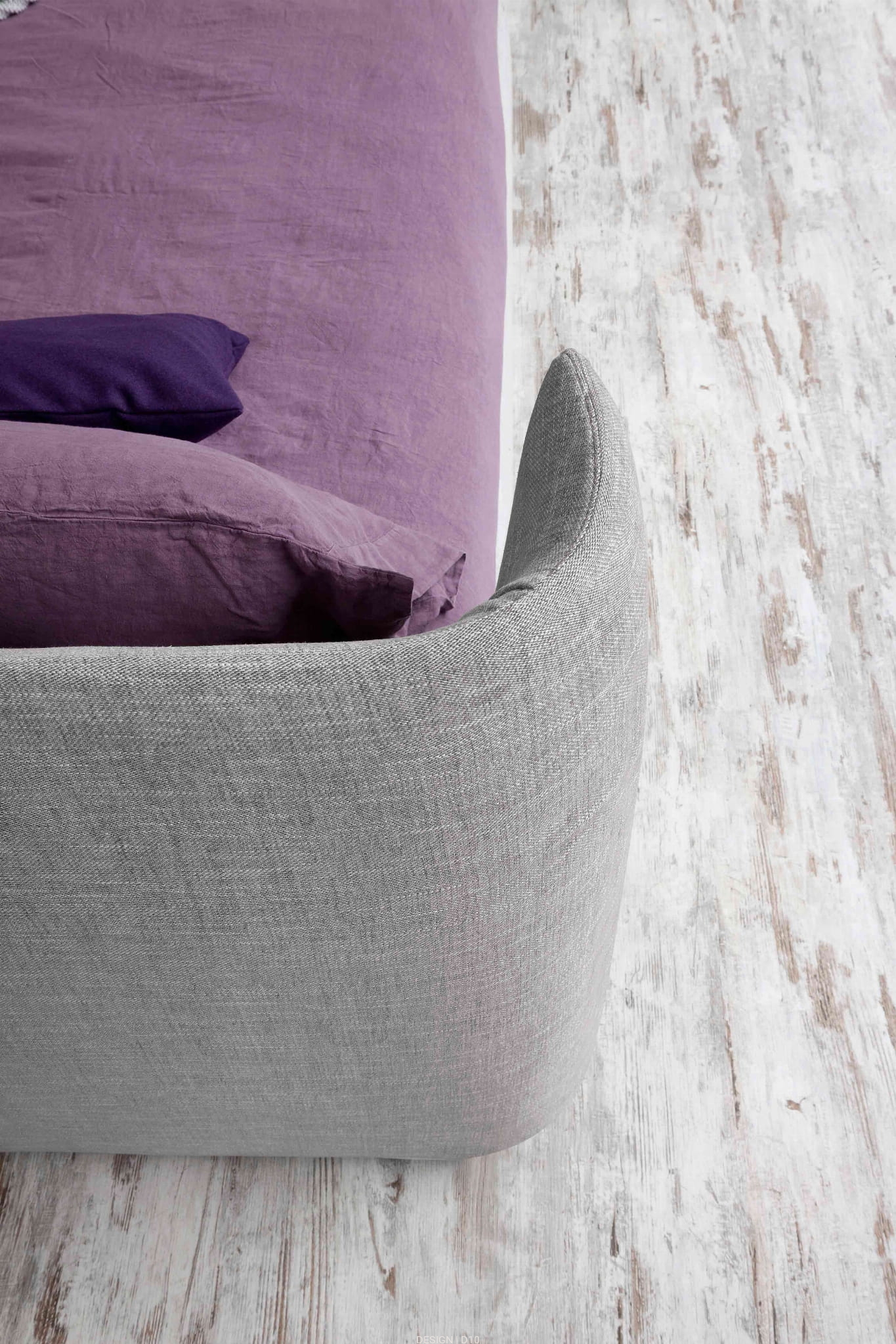 Otulony miękki zagłówek zaokrąglony po bokach nadaje podwójnemu łóżku Basket przyjemny i przytulny wygląd.