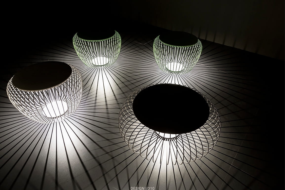 Lampa zewnętrzna Meridiano charakteryzuje się różnorodnością funkcji jakie może pełnić. W dzień można na niej usiąść,ponieważ siedzisko jest miękkie w nocy zmienia się w lampę ozdabiającą refleksami świetlnymi otoczenie.