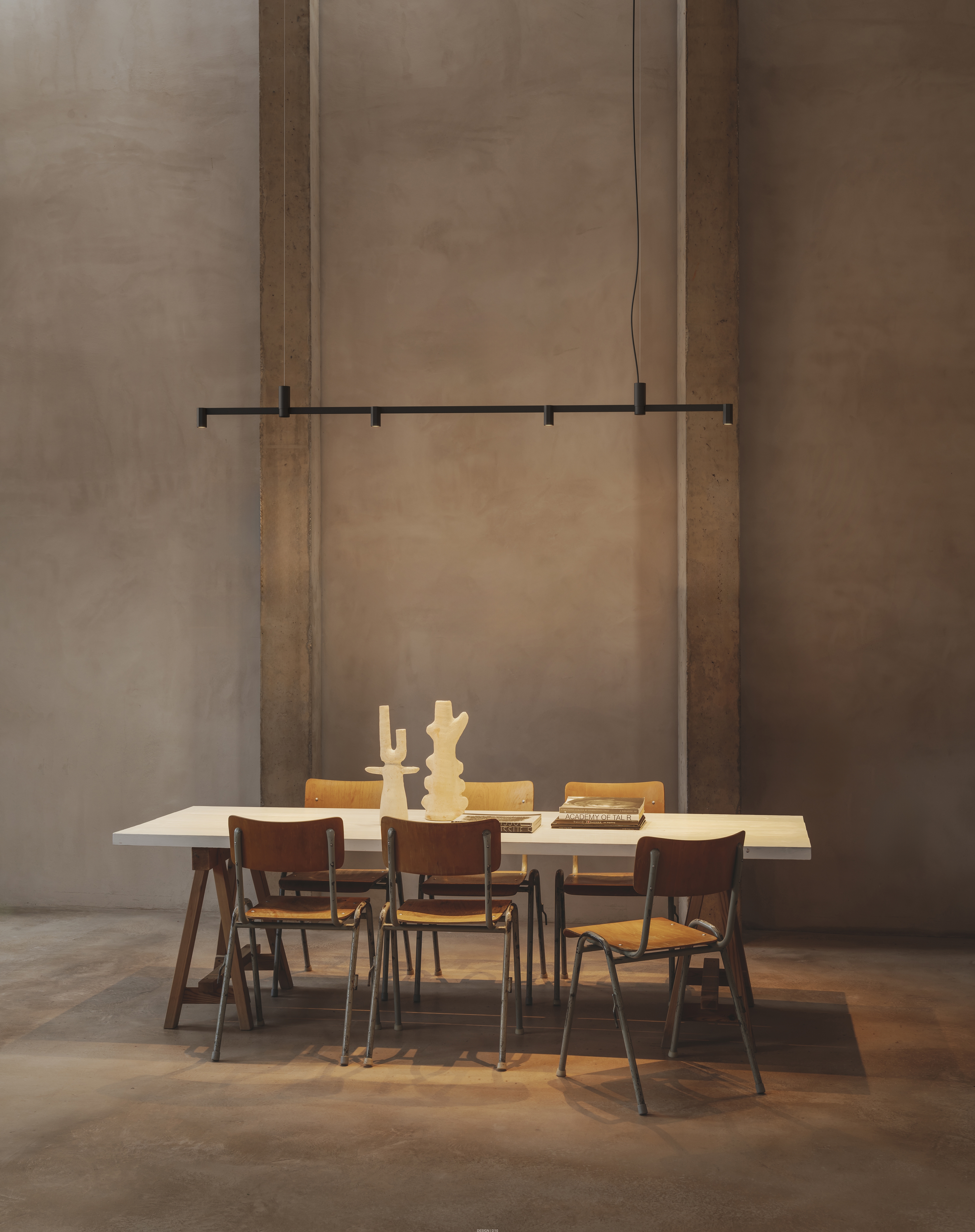Nexum to współczesna reinterpretacja tradycyjnego żyrandola, przekształcona w architektoniczny system oświetleniowy. Zamiast skupiać się na centralnym punkcie, Nexum wprowadza przewodzenie światła jako zasadę konstrukcyjną: światło rozchodzi się w płaszczyźnie poziomej i pionowej, łącząc poszczególne przestrzenie i współgrając z architekturą. Siatka splecionych metalowych profili łączy geometrię i oświetlenie w jednolitą, lekką konstrukcję.
