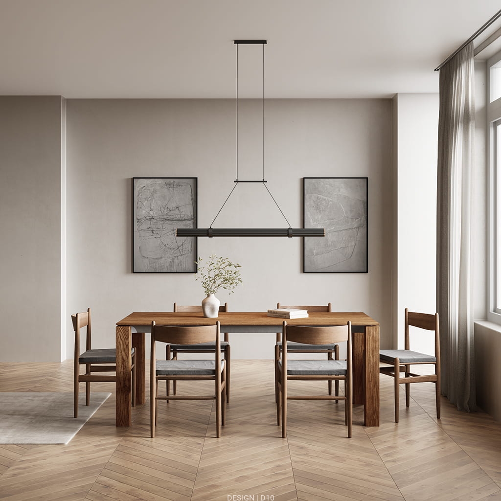 Niro to delikatna oprawa z aluminiowym profilem. Jego budowa nadaje mu delikatności oraz lekkości w powietrzu, urozmaicona jest jednak drewnianymi końcówkami wykonanymi z orzecha które nadają mu surowości oraz odpowiedniego charakteru.