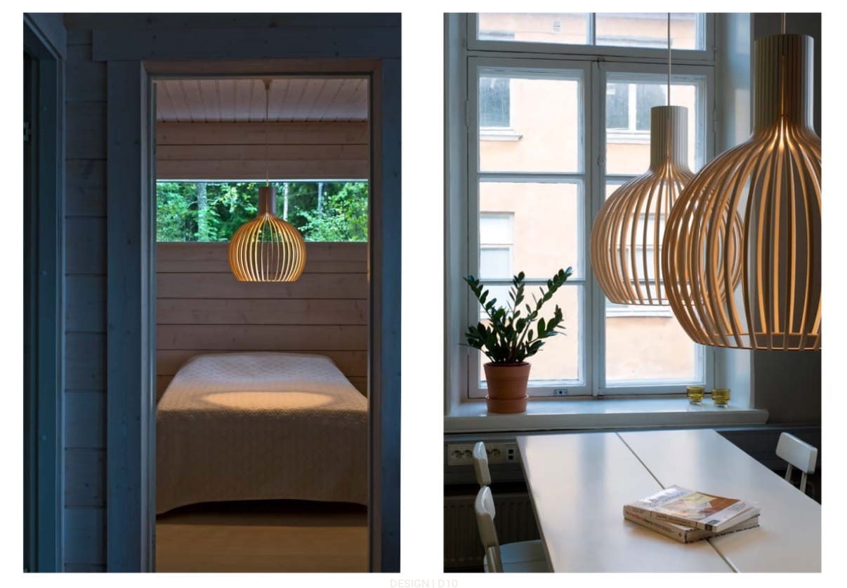 Lampa wisząca wykonana z pasów brzozowej sklejki - giętych i klejonych dla uzyskania pożądanego kształtu. Idealnie prezentuje się solo jak i w większej grupie obok siebie. Lampa jest mniejszą wersją lampy OCTO 4240 dzięki temu nie dominuje nad przestrzenią tylko naturalnie się w nią wpasowuje. Lampa stanowi wyraz tradycyjnej sztuki rzemiosła, która jest gwarantem wyjątkowej jakości. Źródłem światła jest żarówka LED o ciepłej barwie, dzięki czemu tworzy przytulną atmosferę. Lampa dostępna w kolorach: naturalna brzoza, biały, czarny oraz orzech. Możliwość podłączenia oprawy do systemu sterowania oświetleniem DALI.